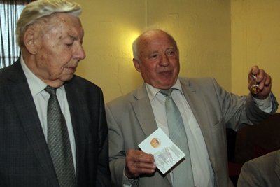 Председатель областного Совета ветеранов Анатолий Сурков вручил российскую награду бессменному в течение 19 лет лидеру еткульских ветеранов Алексею Нестеренко.