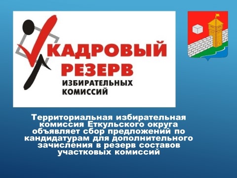 Руководствуясь пунктом 11 части 2.1 Порядка формирования резерва составов участковых избирательных комиссий и назначения нового члена участковой комиссии из резерва составов участковых комиссий, утвержденного постановлением Центральной избирательной комиссии Российской Федерации от 05.12.2012 № 152/1137-6, территориальная избирательная комиссия Еткульского района объявляет прием предложений по кандидатурам для дополнительного зачисления в резерв составов участковых избирательных комиссий на территории Еткульского муниципального района. Прием документов осуществляется с 25.01.2021 года по 15.02.2021 года Территориальной избирательной комиссией Еткульского района по адресу: Челябинская область, Еткульский район, с. Еткуль, ул. Ленина, д.34, кабинет № 36 (2 этаж). При приеме документов, необходимых при внесении предложений по кандидатурам для дополнительного зачисления в резерв составов участковых избирательных комиссий, руководствоваться Методическими рекомендациями о порядке формирования участковых избирательных комиссий в Челябинской области, утвержденными постановлением избирательной комиссии Челябинской области от 05 апреля 2018 года № 50/530-6.