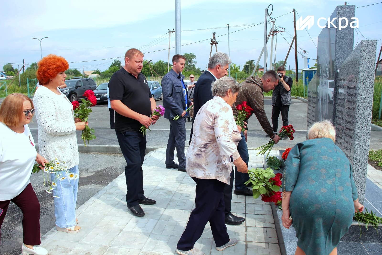 Глава района, секретарь местного отделения партии "Единая Россия" Юрий Кузьменков вместе с Главой Бектышского поселения Александром Луневым и заместителем председателя Законодательного собрания Челябинской области, руководителем фракции партии "Единая Россия" Денисом Моисеевым, и председателем Совета ветеранов Бектышского сельского поселения Валентиной Поляковой открыли мемориал памяти.