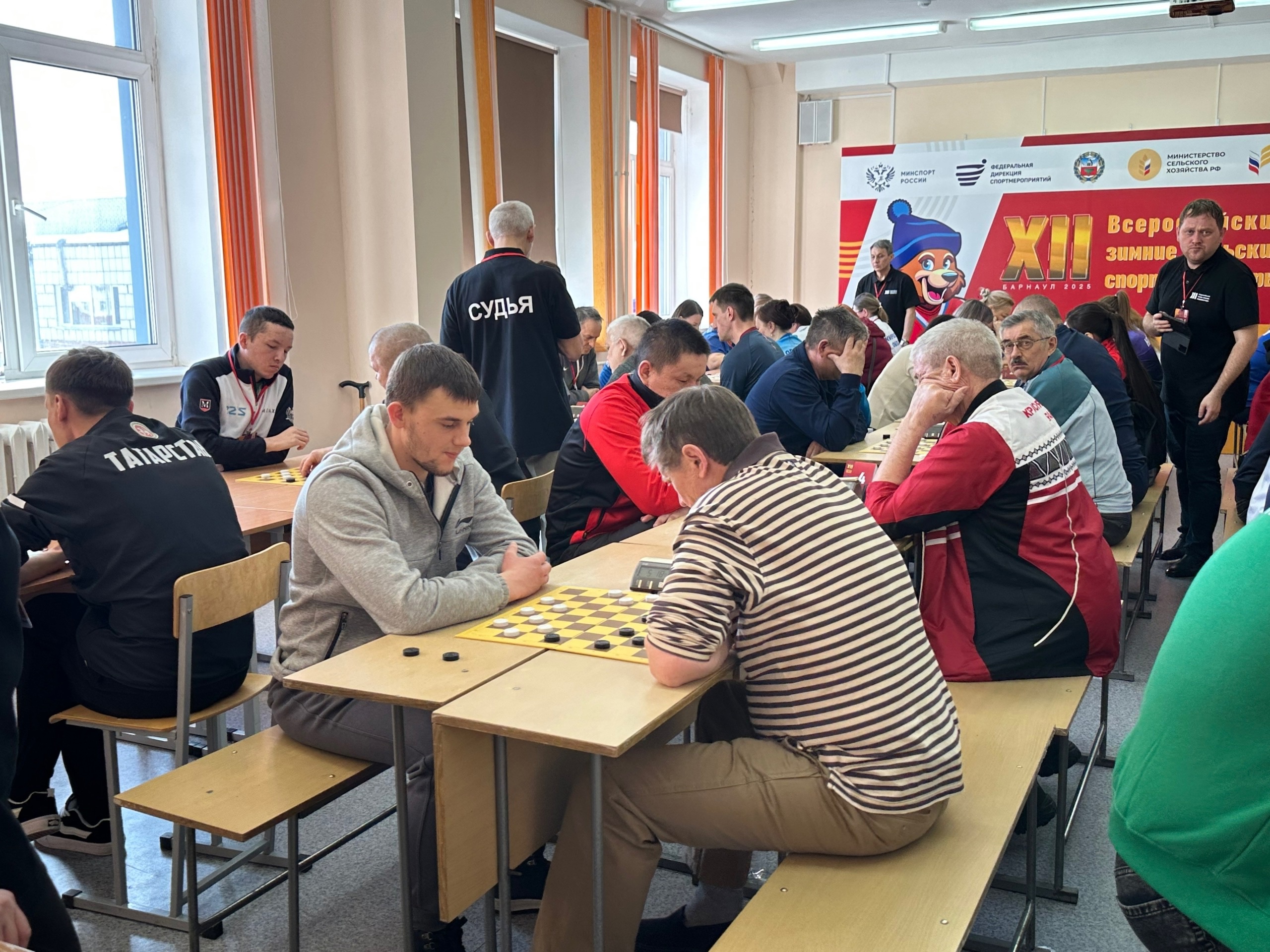 Наши спортсмены проявили невероятную силу воли и мастерство, соревнуясь в 6 дисциплинах: лыжные гонки, шахматы, шашки, а также состязания спортивных семей (с девочкой 2012-2013 г.р. и с мальчиком 2014-2015 г.р.), троеборье механизаторов и троеборье дояров.