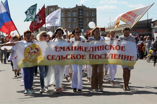 Еткулем звучали здравицы в честь 35 организаций. Открывала парад трудовых коллективов группа шоу-театра «Пандора». В казачьей форме шагали казаки общественной организации «Станица Еманжелинская», в белых халатах вышли на парад медицинские работники. В колонне Коелгинского сельского поселения шагали «мраморный куб» и «корова» – символы двух крупнейших предприятий села АО «Коелгмрамор» и СПК «Коелгинское» . Яркой костюмированной колонной прошли сотрудники и воспитанники районного Дома детского творчества». С флагами в руках и в синих футболках вышли на площадь местные единороссы. У общественной организации «Бодрость» именные футболки и кепки, шагая по площади они выполняли привычные для скандинавов упражнения. Возглавляли колонны руководители поселений и предприятий, в их рядах шли почётные граждане района и сельских поселений, заслуженные учителя и выпускники, сельхозработники, птицеводы, работники банков, работники детских учреждений, журналисты, спортсмены.