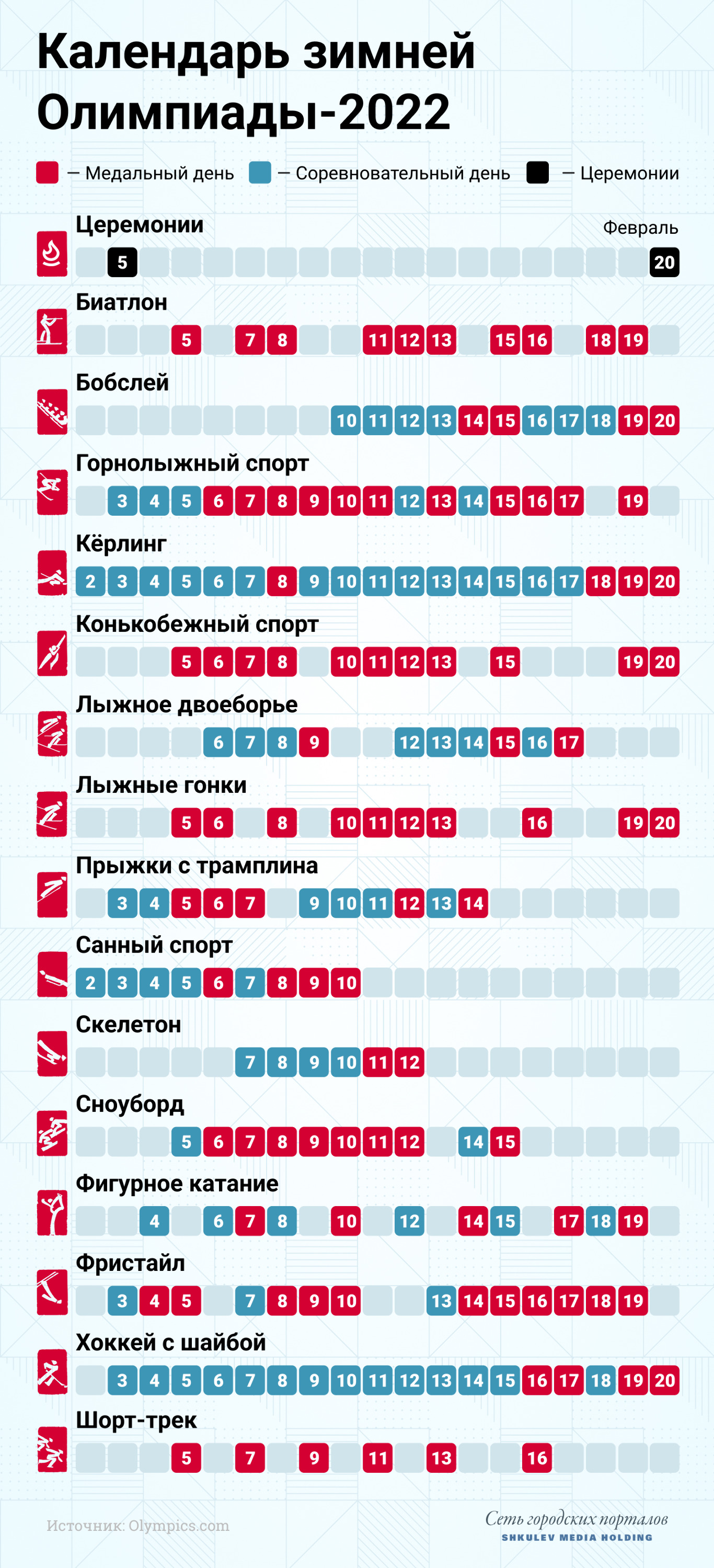 Ниже опубликовано расписание Олимпийских игр в Пекине — 2022.