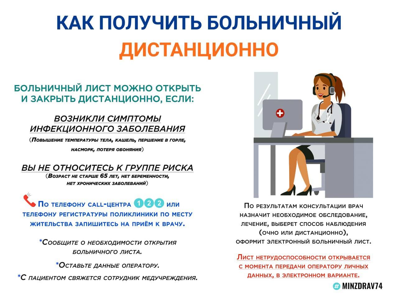 На сайтах медицинских учреждений Челябинской области и на сайте talon.zdrav74.ru появилась возможность оставить заявку для получения листа нетрудоспособности дистанционно.