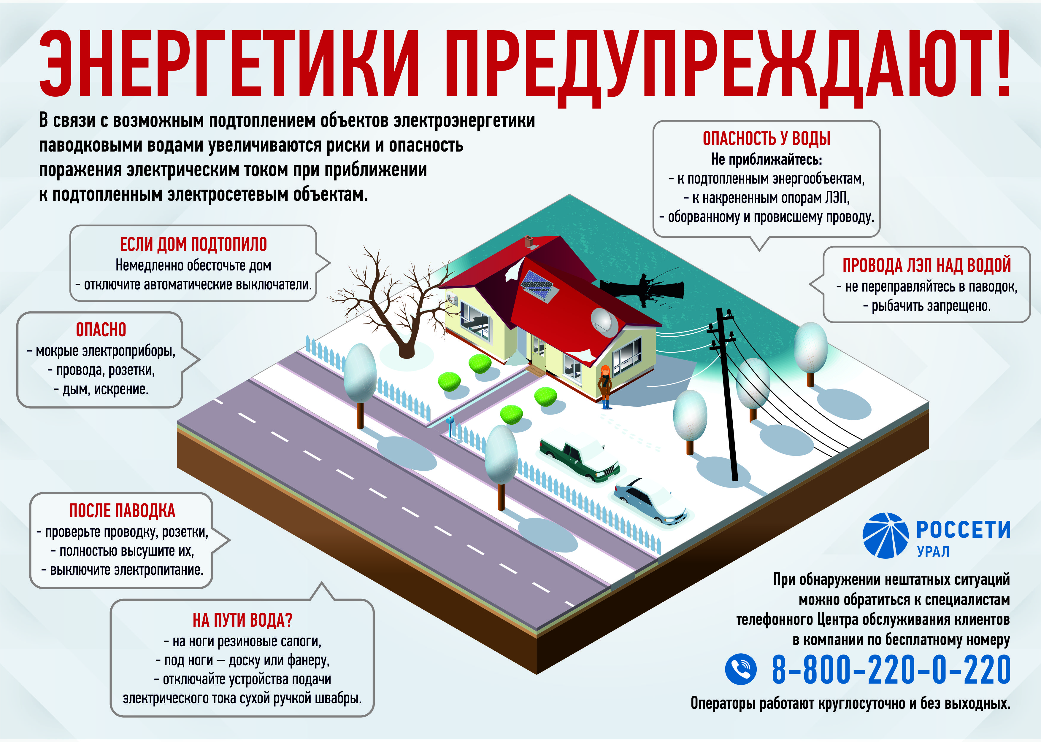 Специалисты филиала «Россети Урал» - «Челябэнерго» предупреждают жителей Челябинской области о мерах безопасности в период весеннего паводка