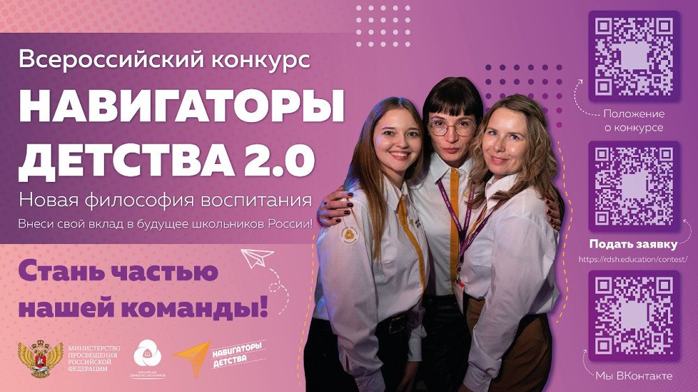 «Навигаторы детства» – открытый конкурс Министерства просвещения Российской Федерации и Российского движения школьников по отбору кандидатов на должность советника директора школы по воспитанию и работе с детскими объединениями. Более 2800 специалистов приступили к работе в десяти пилотных регионах.