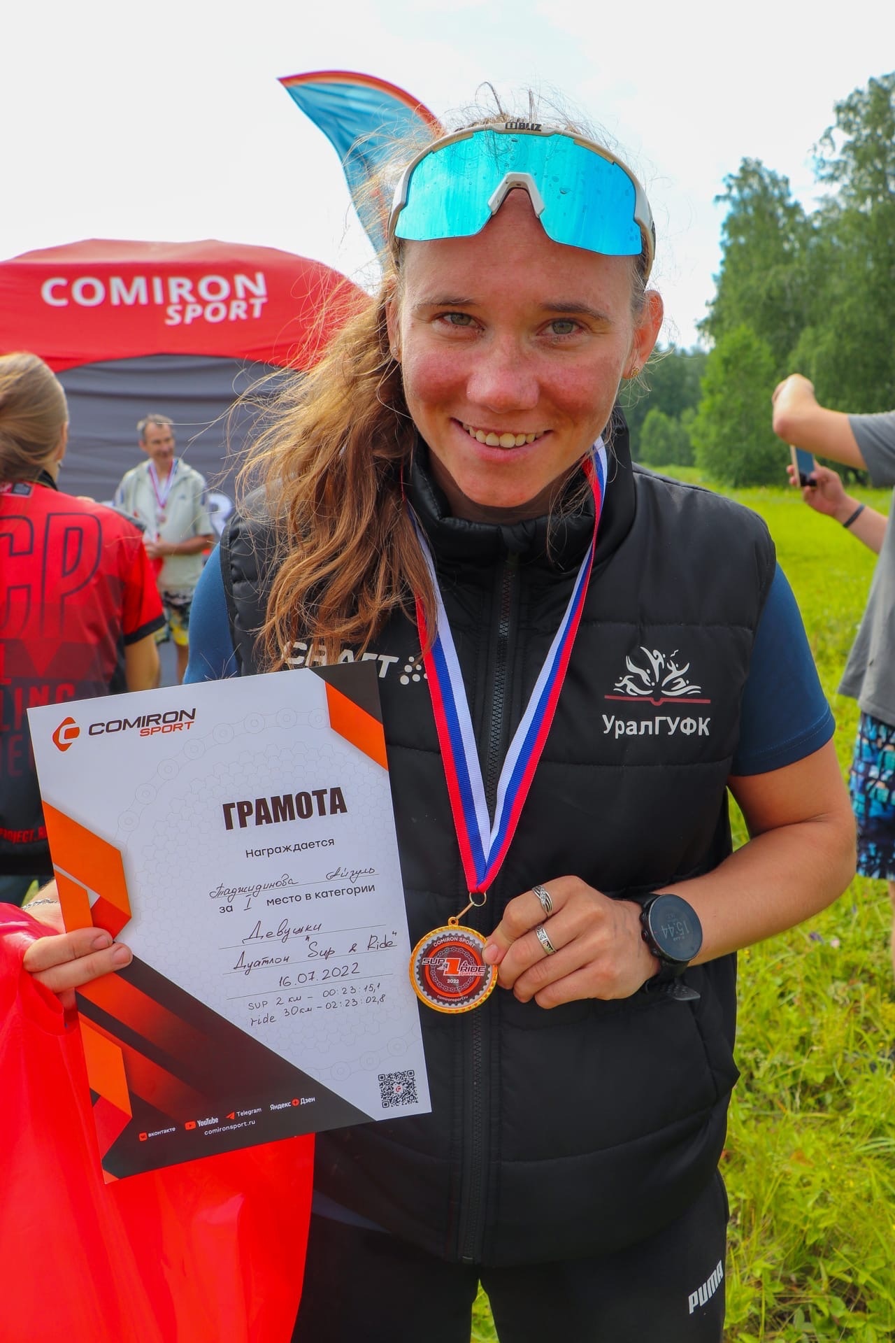 Спортсмены стартовали с суши одновременно по команде "Старт", пробежали по пляжу расстояние около 50-ти метров вместе со своими доской и веслом, далее начинали движение по буям. Всего участникам соревнований нужно было проплыть 2 км на доске Sup Surf с веслом по озеру Песчаное. По преодолению дистанции 2 км, спортсмены выходили из воды и направлялись в транзитную зону, где их ждал заранее подготовленный велосипед и корзина с необходимыми вещами. Второй сегмент – велогонка. Это почти 30 км! Наша Еткульчанка Айгуль Таджидинова стала победители в своей категории! Поздравляем!