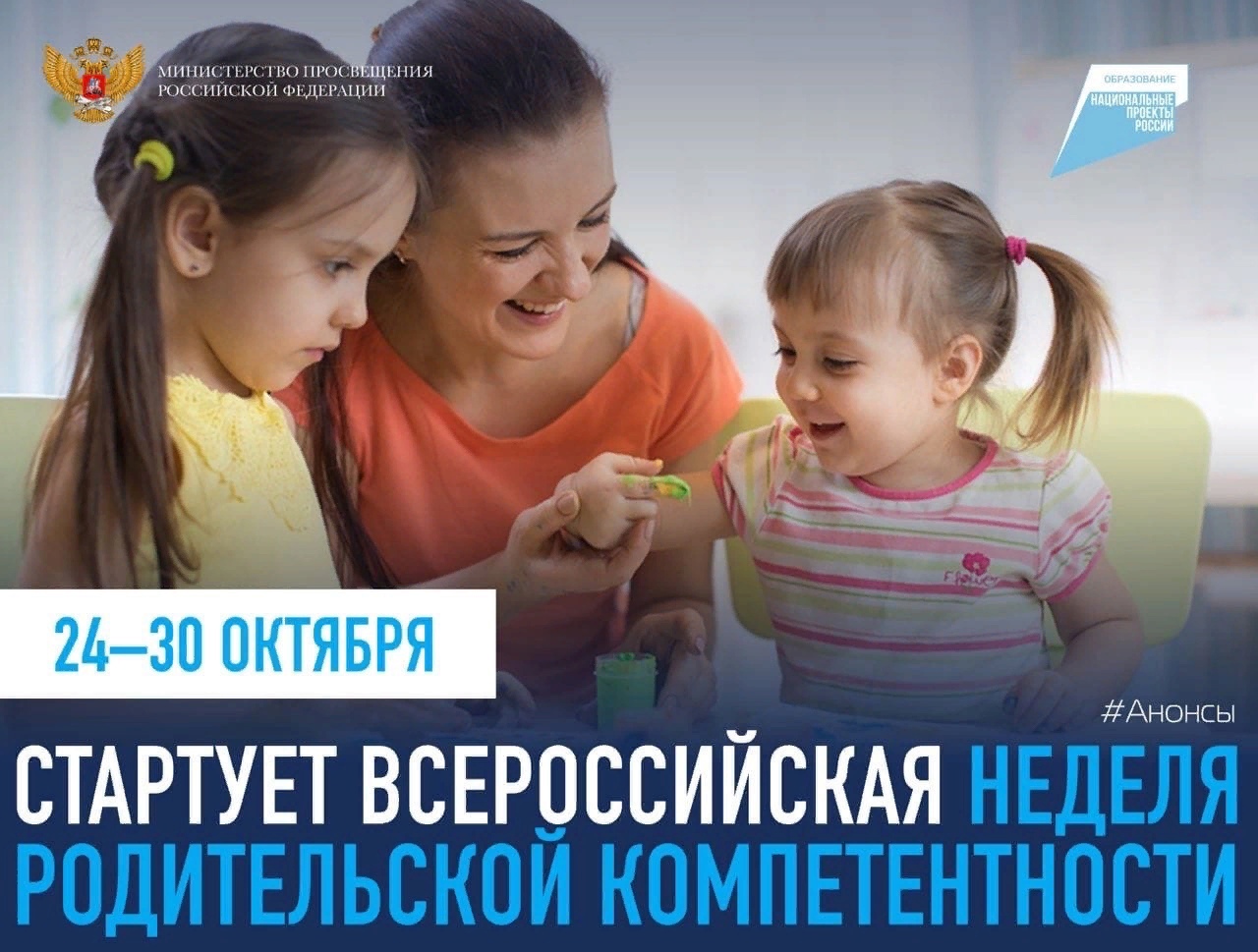 Минпросвещения России информирует о проведении с 24 по 30 октября 2022 года Всероссийской недели родительской компетентности.