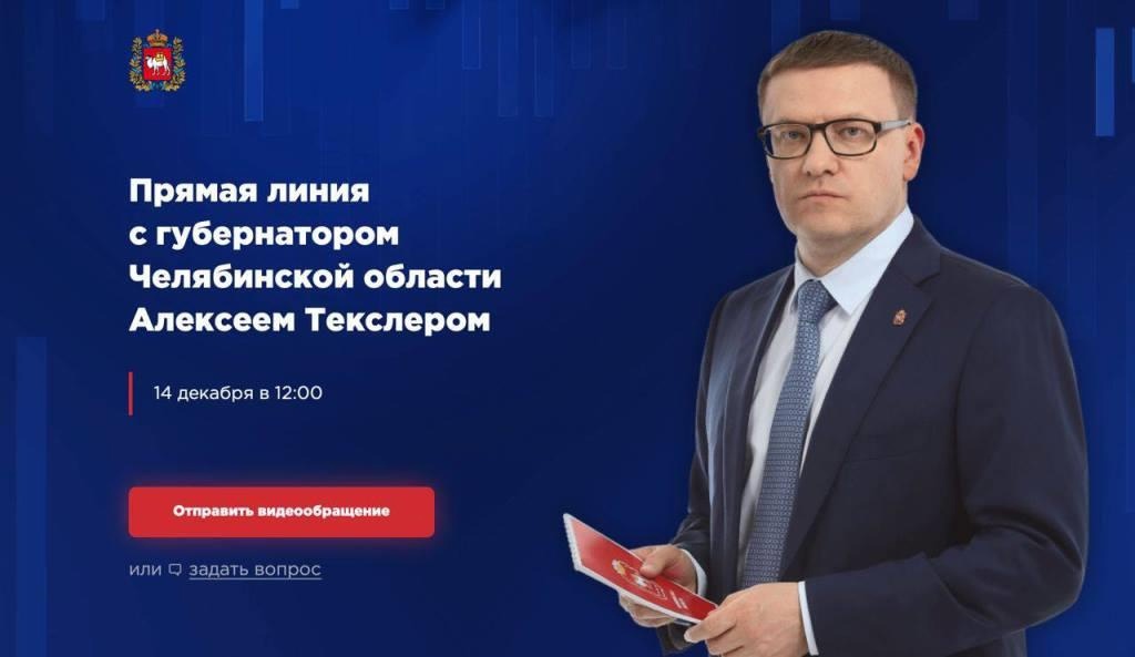 В среду, 14 декабря, в 12:00 губернатор Челябинской области Алексей Текслер в прямом эфире ответит на вопросы южноуральцев.