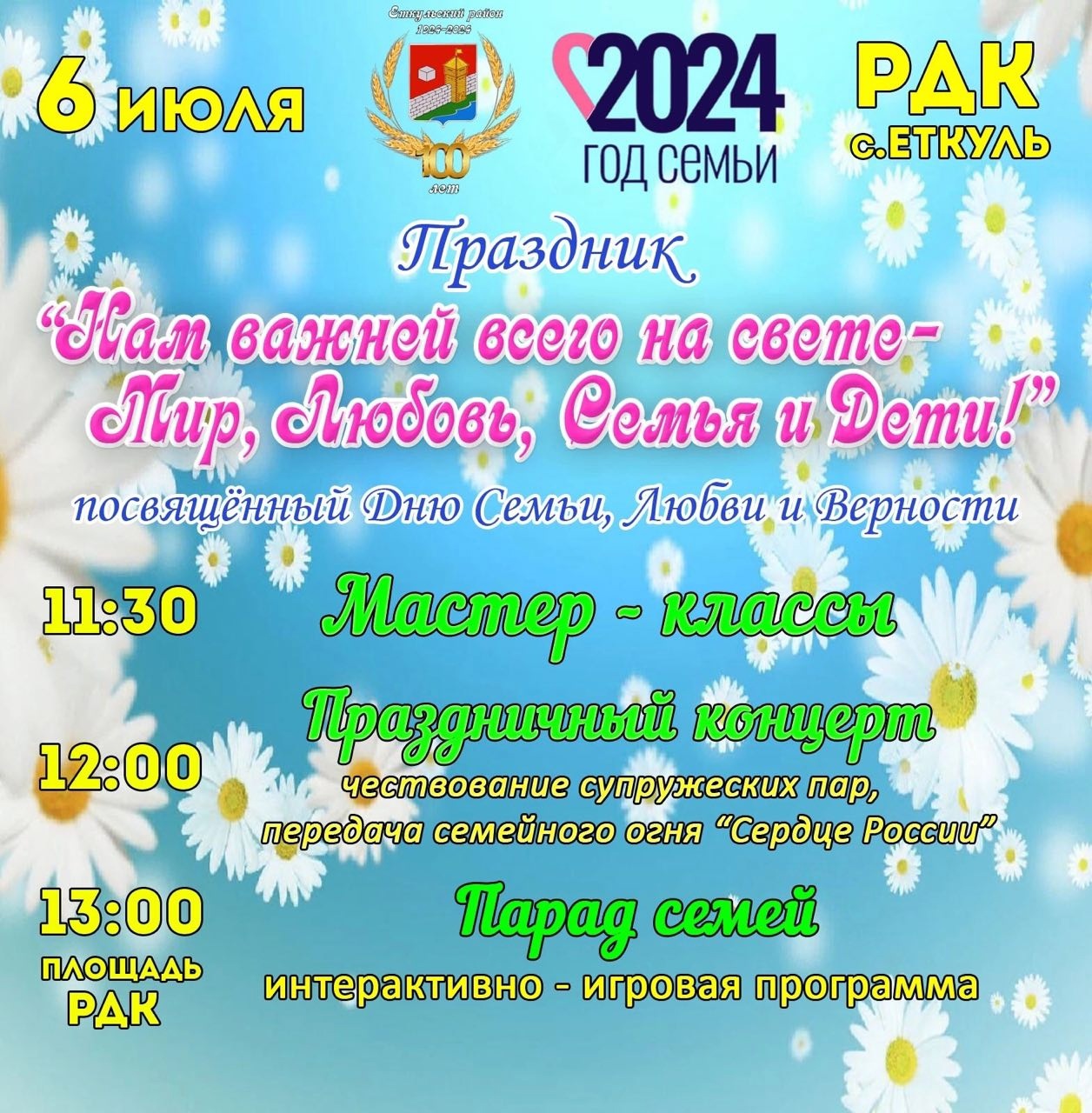 Приглашаем всех жителей Еткульского района на семейный праздник «Нам важней всего на свете – Мир, Любовь, Семья и Дети»