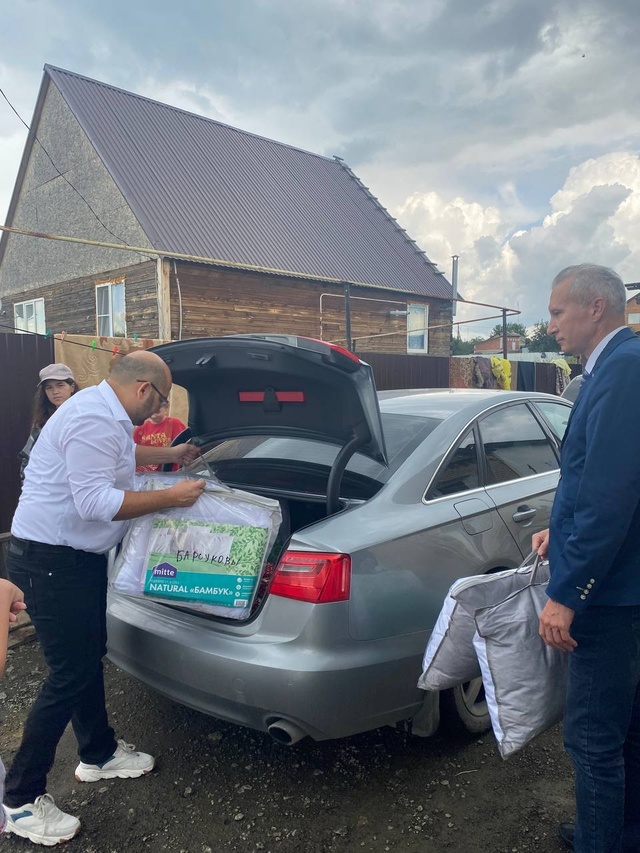 «Мы приехали не с пустыми руками — для нескольких многодетных семей, пострадавших от подтоплений, мы привезли вещи первой необходимости: постельные комплекты, подушки, одеяла, одежда, канцелярия для детей.