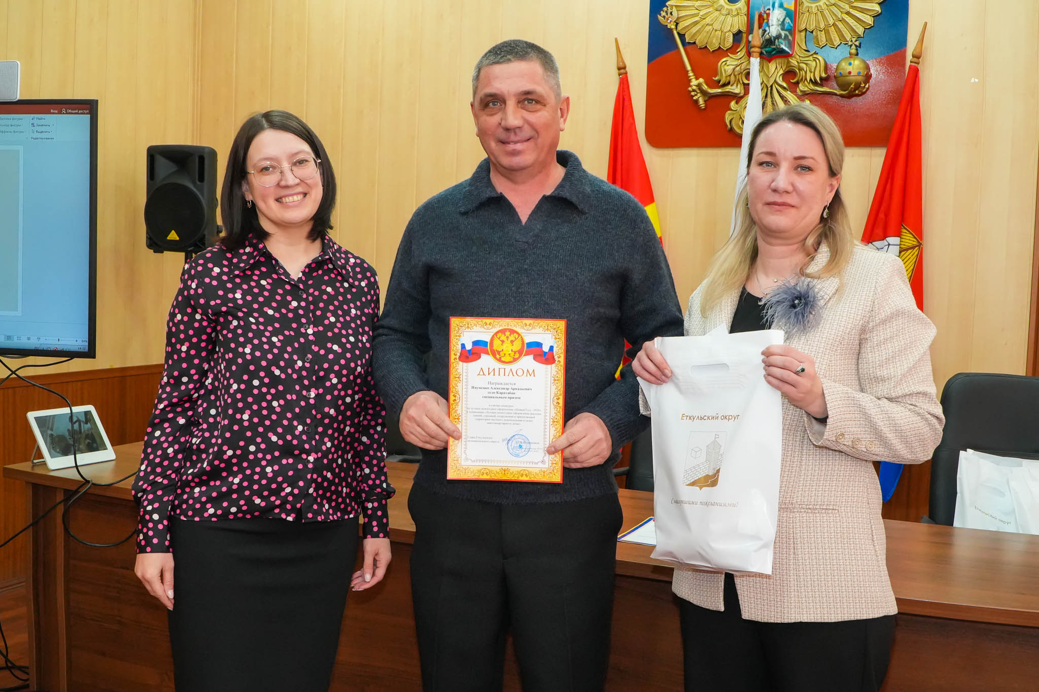 В администрации Еткульского округа прошла торжественная церемония чествования тех, кто подарил жителям и гостям муниципалитета атмосферу праздника. Победители и участники традиционного конкурса на лучшее новогоднее оформление получили заслуженные награды.