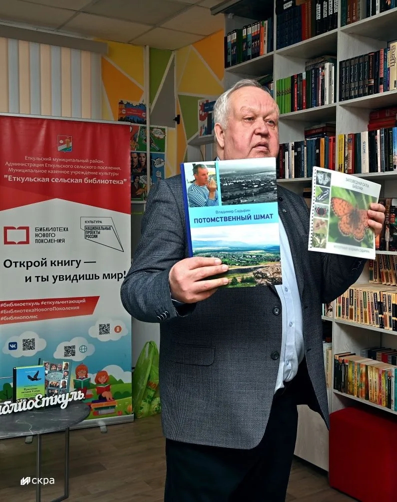 3 марта, в День писателя и День дикой природы, читатели Еткульской библиотеки, среди которых члены Общественной палаты Еткульского муниципального округа, встретились с писателем-краеведом Владимиром Садыриным, автором 18 книг о природе и людях Южного Урала. Автор первых книг-определителей цветов и птиц региона скромно говорит о себе: «Я не писатель, а только комментатор собственных фотографий». Но их, к слову, у него десятки тысяч!