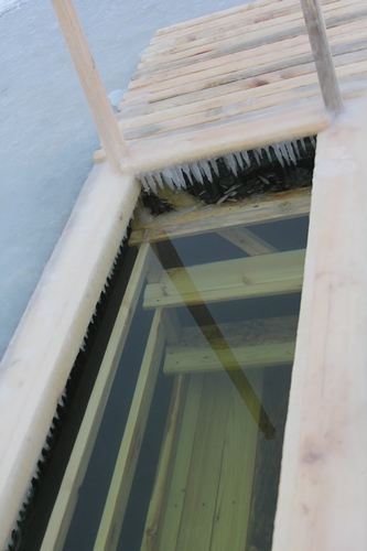 Удобной и надёжной была деревянная купель – неглубокая, с деревянным дном, со ступеньками для входа и выхода из воды, она светилась свежестью дерева и радовала удивительно чистой водой.