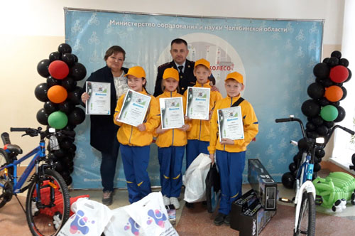 Команда юных инспекторов движения и руководитель Елена Куприкова Еткульского районного Дома детского творчества принимают поздравления: в областных соревнованиях юных инспекторов движения «Безопасное колесо» они заняли третье место!