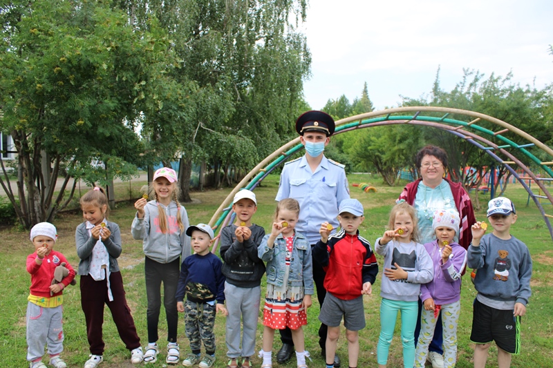 Рустам рассказал, что полицейский должен быть сильным, быстрым, ловким, что спорт важен для здоровья. Показал не сложные упражнения для поддержания физической формы, проверил меткость попадания мяча в баскетбольное кольцо. Также он призвал детей вести здоровый образ жизни. Ребята активно выполняли все упражнения. По окончании мероприятия дети получили сладкие призы.