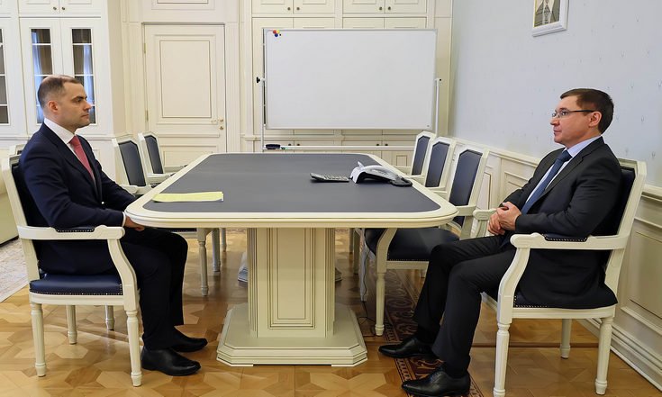 14 февраля Владимир Якушев провёл рабочую встречу с руководителем Уральского межрегионального управления Федеральной службы по надзору в сфере природопользования Романом Тужиковым.