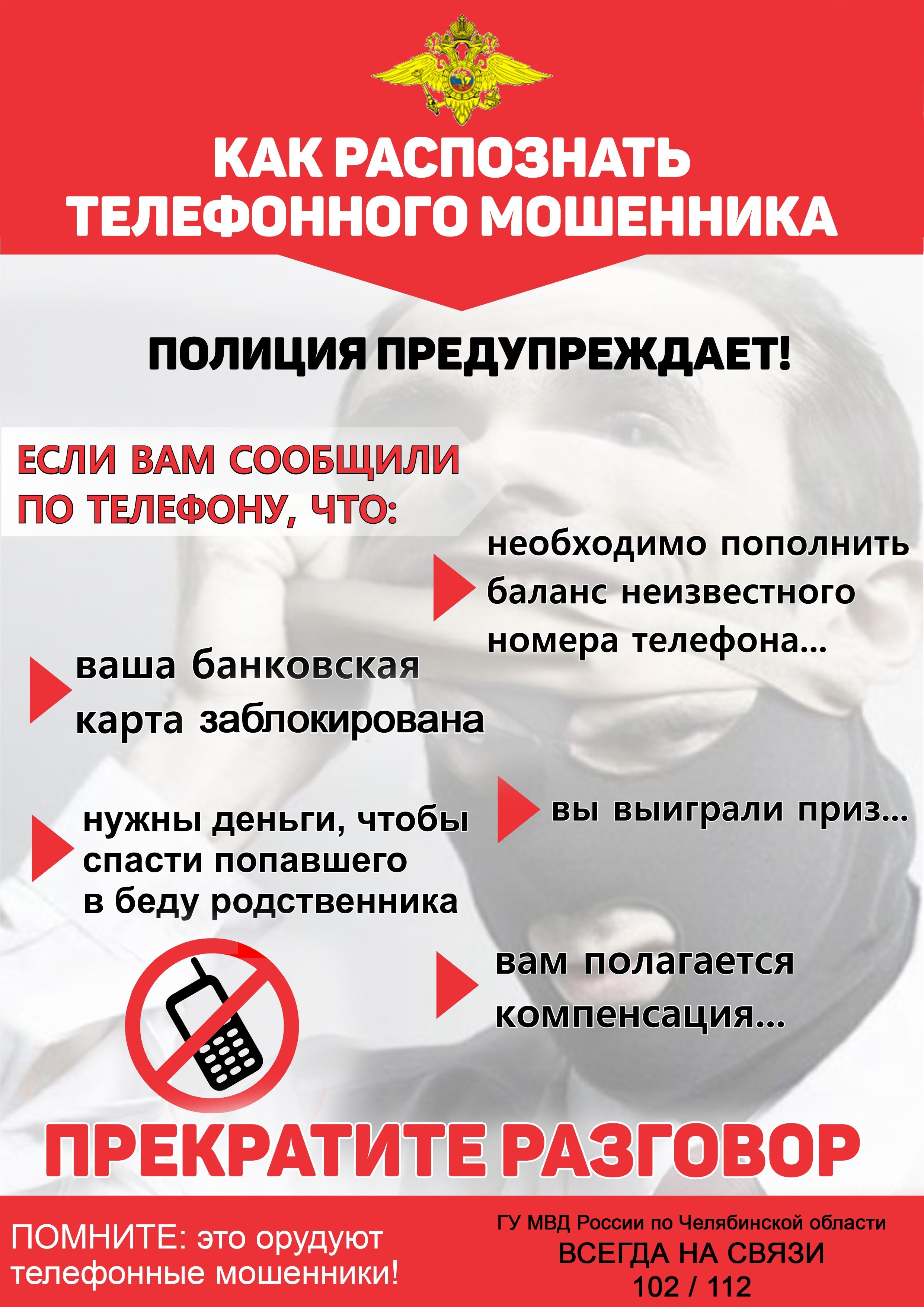 Согласно информации ГУ МВД России по Челябинской области за 12 месяцев 2021 года на территории области зарегистрировано 65299 преступлений, из них каждое шестое, 10302 совершено с использованием информационно-коммуникационных технологий (2020 год – 10180). Южноуральцы в 2021 году отдали мошенникам, которые действовали с помощью информационно-коммуникационных технологий более 1 млрд рублей. Подавляющее большинство преступлений указанной категории совершается с применением методов «социальной инженерии», то есть доступа к информации с помощью телекоммуникационных сетей для общения с потерпевшими (сотовой связи, ресурсов сети Интернет). Чаще всего мошенники используют все более изощренные способы: звонят с коротких абонентских номеров, либо используют номера московского региона (495….,499…..,800….), представляются сотрудниками банка, которым зачастую известны ваши личные данные, так же совершают звонки, представляясь, сотрудниками полиции и убеждают граждан в необходимости перевода денежных средств на расчетный счет мошенников. Напоминаем, для того чтобы не стать жертвами мошенников необходимо придерживаться простых правил: - не выполнять никаких операций со своими картами по инструкциям от неизвестных лиц по телефону; - помнить, что для перечисления денежных средств на Вашу карту, достаточно знать только ее номер; - не перечислять деньги своим друзьям или родственникам через социальные сети, предварительно не созвонившись с ними; - заказывая товары посредством сети Интернет, доверять только проверенным сайтам или производить оплату при получении товара; Помните, что Ваша безопасность зависит только от Вас! |