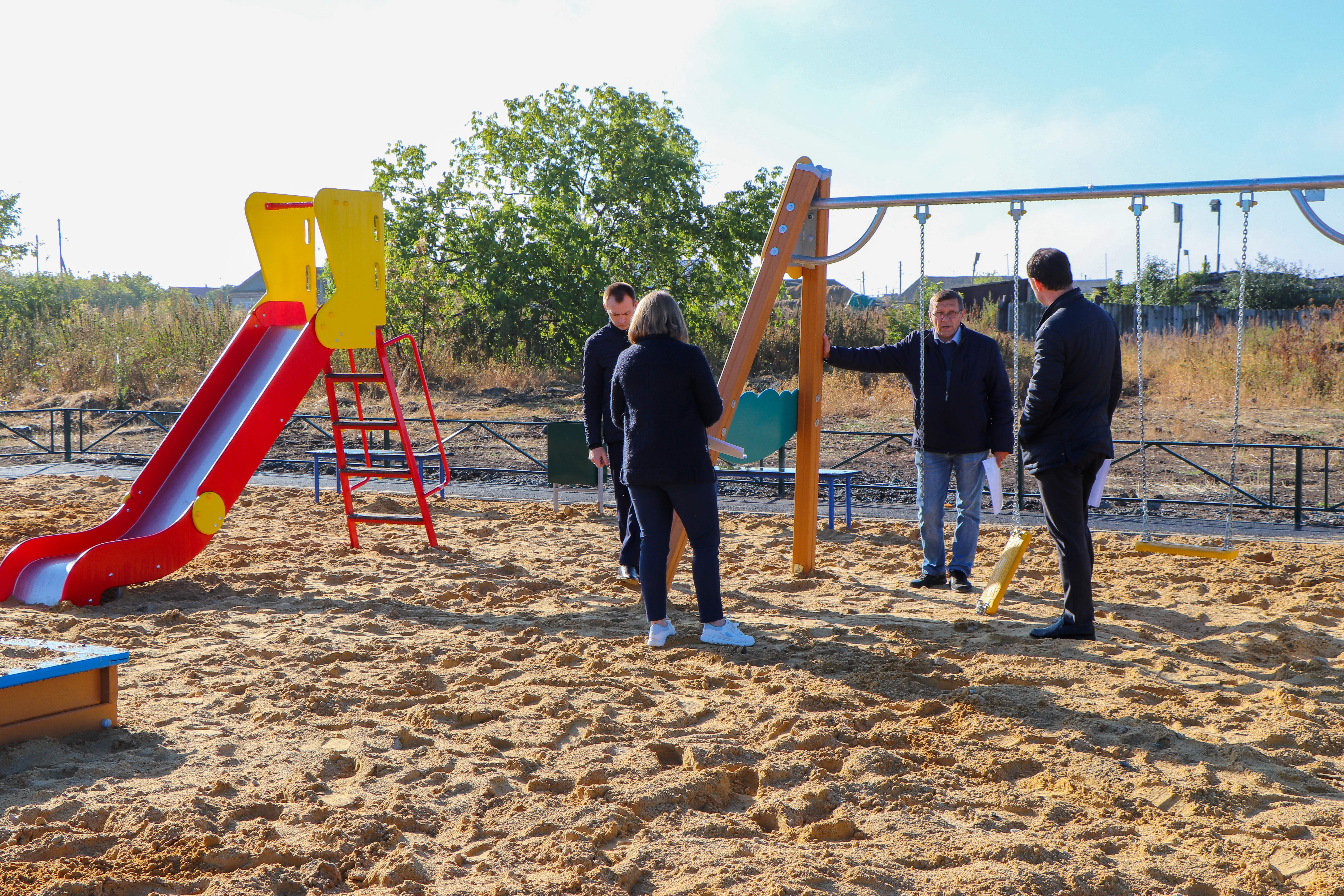 На сегодняшний день все строительные работы завершены. В результате плодотворной работы создана полноценная зона отдыха для местных жителей: установлено ограждение, выполнено покрытие из песка, оборудована детская площадка для разновозрастных групп детей, а также размещены малые архитектурные формы.