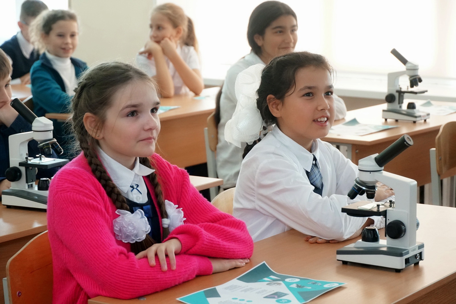 Каждый ученик и гости, смогли соприкоснуться с замечательным миром естественнонаучного направления. Посмотреть в микроскоп удивительные клетки нашего организма, измерить уровень кислорода в помещении и создать микропрепарат из растения в кабинете.