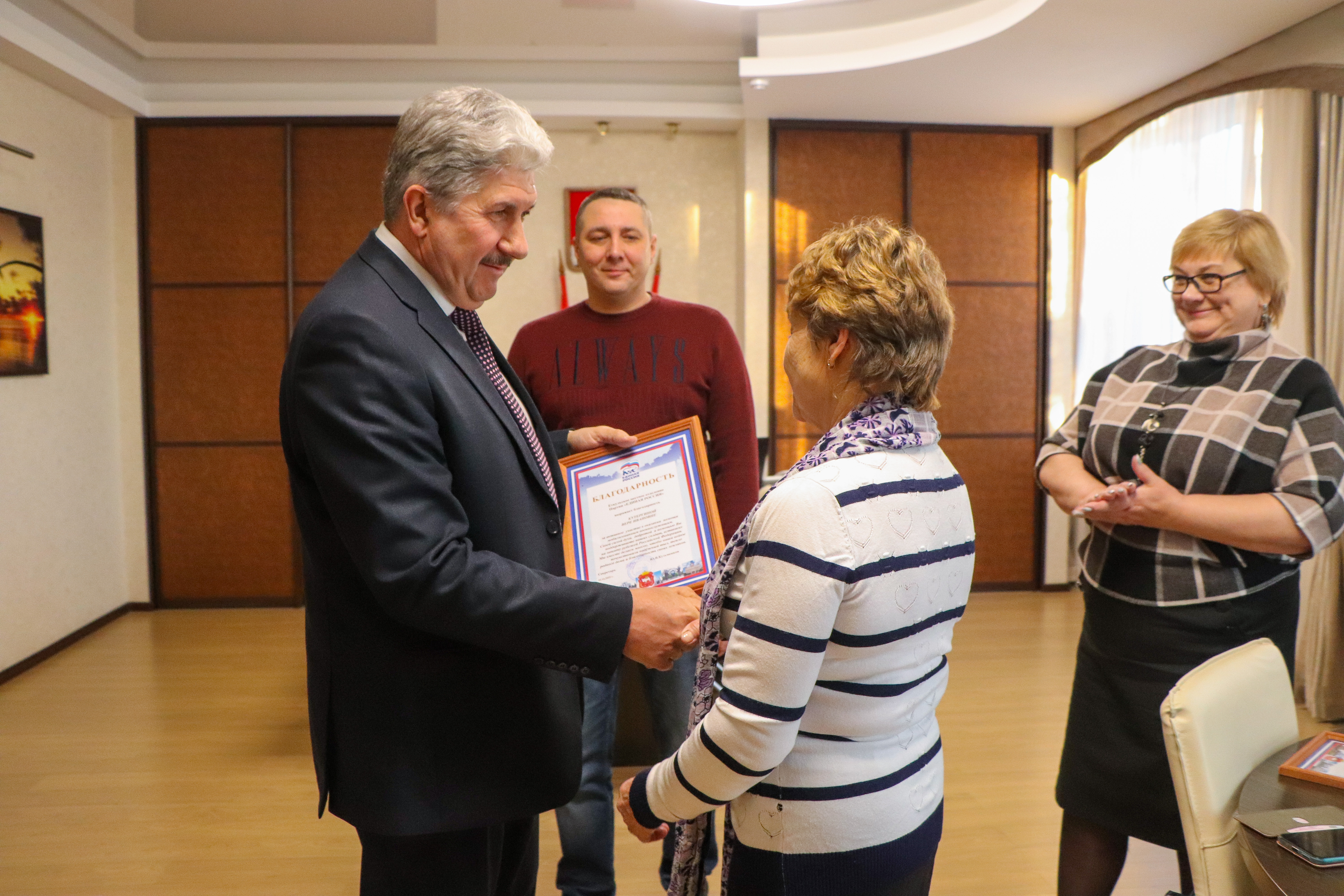 Во время общения Юрий Владимирович поблагодарил активных граждан и вручил им благодарности.