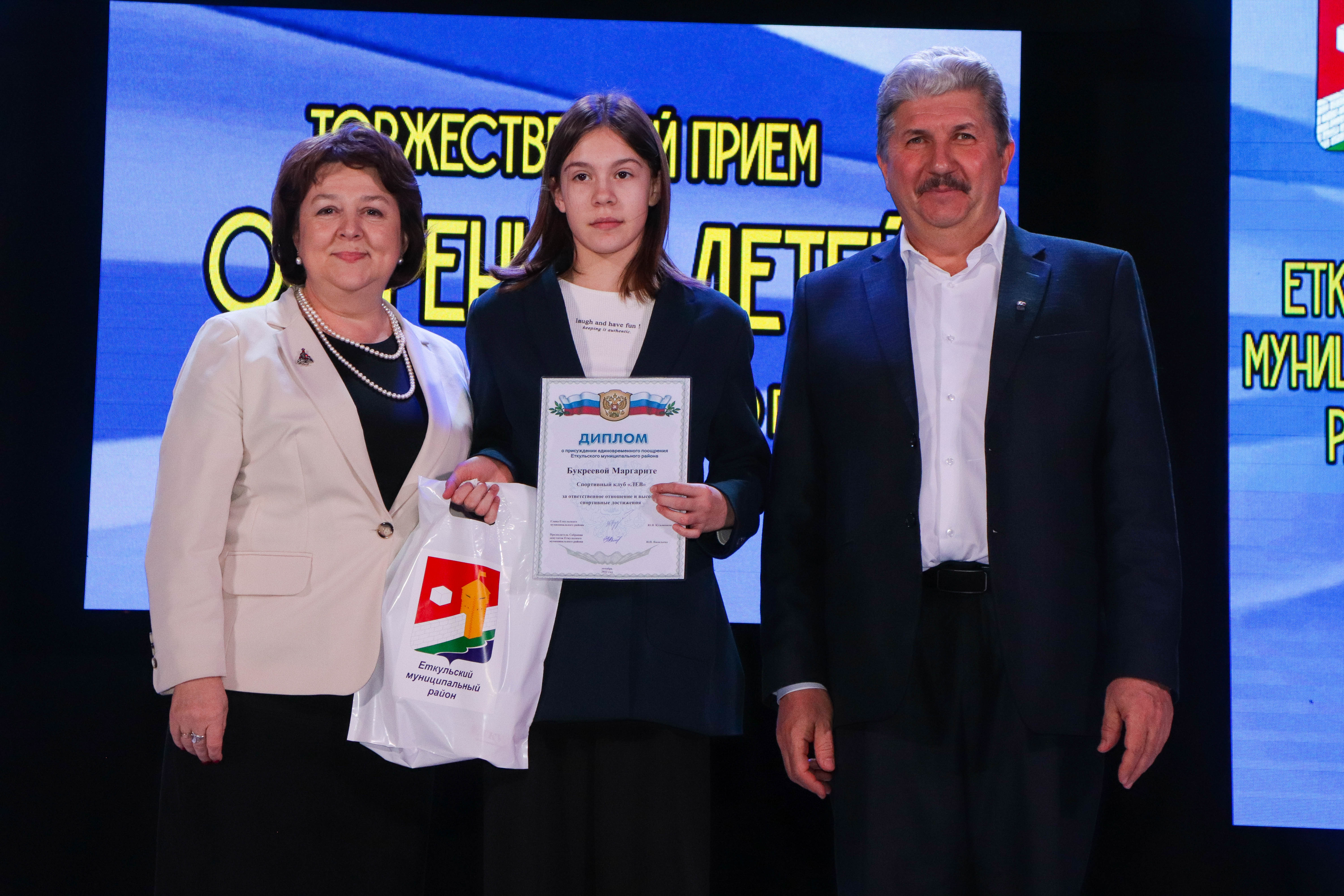Много тёплых слов прозвучало в адрес юных спортсменов. Глава района Юрий Кузьменков совместно с заместителем главы района Галиной Ямгуровой поблагодарил ребят и отметил их силу духа и волю к победе. Сергей Агапов, Андрей Дуюн и Егор Куварзин (секции по боксу), Анна Борисова (объединение «Рокировка»), Маргарита Букреева и Рязанов Никита (секция джиу-джитсу), Евгений Сырцов (секция по борьбе) получили признание. Все они неоднократные победители соревнований различных уровней. К церемонии награждения присоединился начальник Управления культуры и молодежной политики Владимир Агаян. В номинации «Культура» главой были вручены грамоты обучающимся Еманжелинской детской школы искусств Марии Баратовой, Светлане Усовой, Михаилу Усову, обучающимся Коелгинской ДШИ Кириллу Бобылеву и Диане Ярославцевой, воспитаннице Центра Развития Творчества детей и Юношества «Радуга» с. Коелга Мадине Додовой, участнице студии вокального пения «Новая волна» Софье Тихончук (ДК «Юность» с.Еманжелинка). Также были отмечены достижения образцового хореографического коллектива «Геликон» (РДДТ) и образцового хореографического коллектива «Фантазия» (Еманжелинская ДШИ).