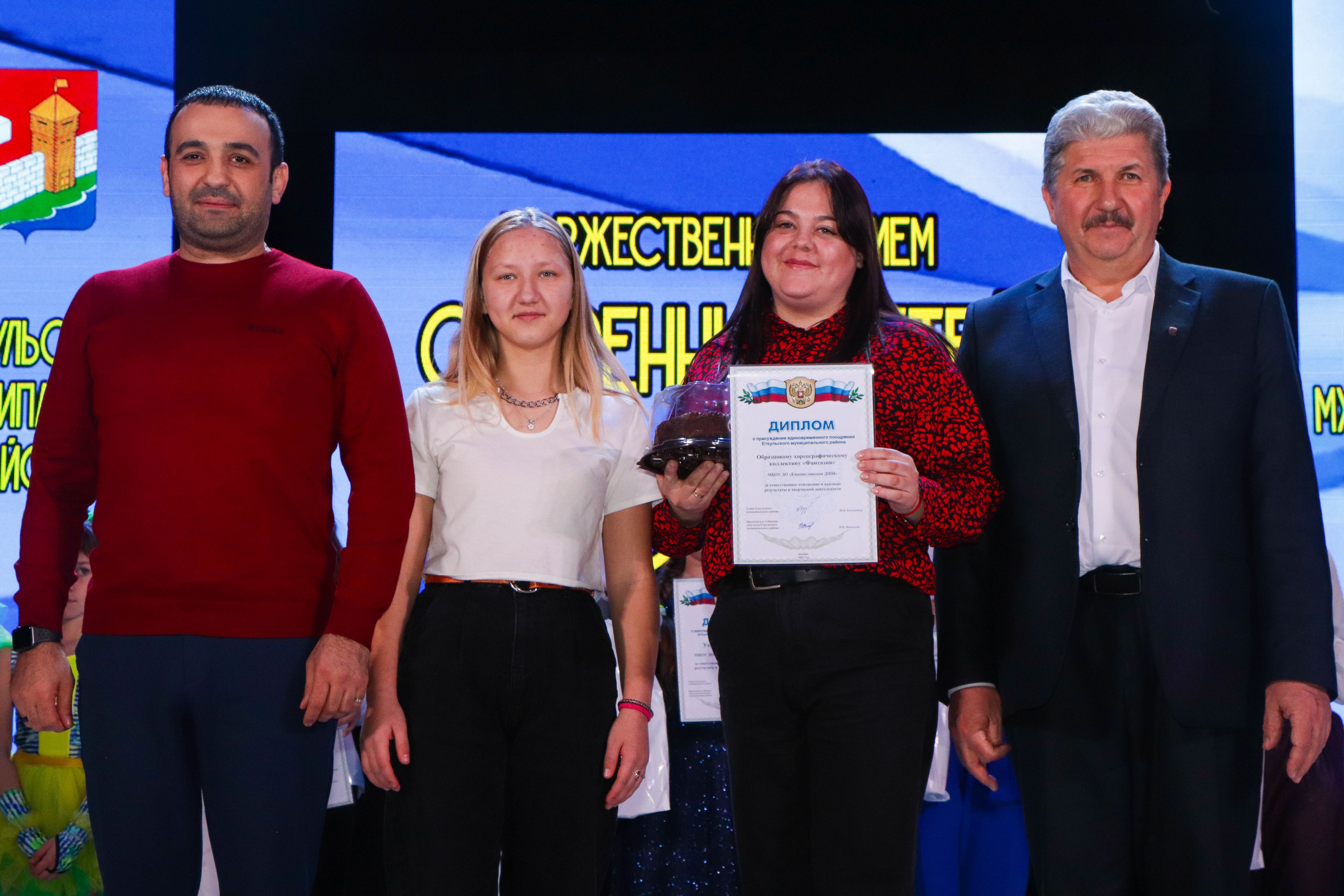 Отдельно глава района поблагодарил наставников ребят: «Трудолюбие, настойчивость и профессионализм – лишь некоторые из качеств тех людей, которые являются, руководителями. Именно вы вложили большой вклад в формирование нравственного, интеллектуального, физического и культурного развития своих подопечных». Под бурные аплодисменты на сцену были приглашены лучшие педагоги-наствники. Среди них Анастасия Астраханская (руководитель клубного формирования (вокал) ДК «Юность» с.Еманжелинка), Светлана Дворцова (педагог дополнительного образования, руководитель объединения «Школа юного журналиста» МБУ ДО «Еткульский районный Дом детского творчества»), Татьяна Казак (советник директора по воспитательной работе МКОУ «Каратабанская СОШ»), Светлана Карапетян (педагог дополнительного образования по классу фортепиано МБОУ ДО «Еманжелинская ДШИ»), Алексей Карнот (тренер по джиу-джитсу спортивного клуба «ЛЕВ»), Анастасия Колодий (руководитель образцового хореографического коллектива «Фантазия» Еманжелинской ДШИ), Оганес Конян ( тренер-преподаватель отделения «Греко-римская борьба» ДЮСШ), Наталия Котельникова ( педагог дополнительного образования, руководитель образцового хореографического коллектива «Геликон» «Еткульский районный Дом детского творчества»), Елена Куприкова (педагог дополнительного образования, объединение «ЮИД» «Еткульский районный Дом детского творчества»), Алёна Шихова (руководитель вокального коллектива «Хрустальные голоса» Центра Развития Творчества детей и Юношества «Радуга» с. Коелга).