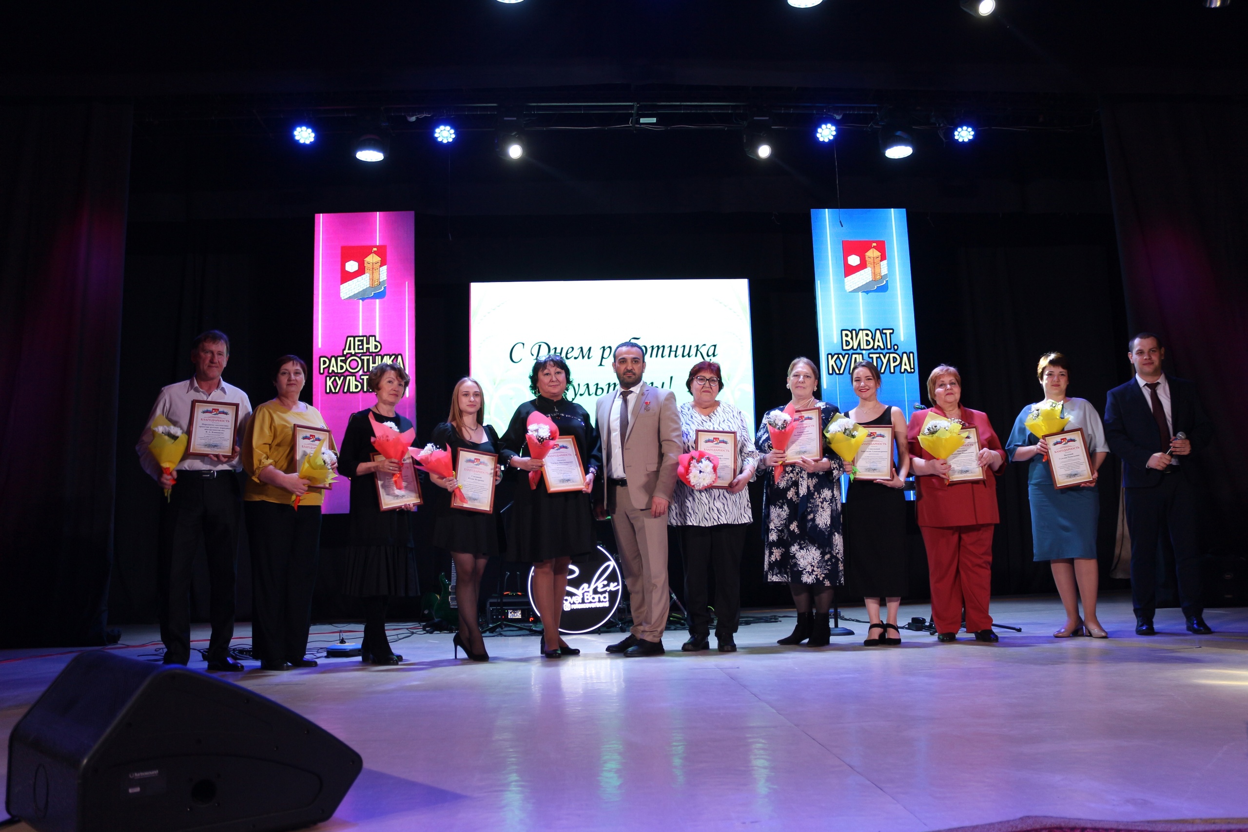 Благодарностью управления культуры и молодежной политики администрации Еткульского муниципального района за добросовестное отношение к выполнению должностных обязанностей, активную профессиональную позицию были отмечены Юлия Смолина, Танзиля Мосичук, Рузалия Кочнева, Мавлида Варюхина, Людмила Каширина, Анастасия Савельева, Валентина Шкелёва, Гузелия Валеева, Никита Устьянцев, Светлана Грачёва и народный коллектив Оркестра Русских народных инструментов имени Заслуженного работника культуры России Владимира Алексеевича Конищева, руководитель Юрий Тверитинов. Профессия работника культуры самая яркая, нужная и разнообразная. Добрые слова благодарности и искренние поздравления прозвучали в адрес самых почётных гостей – ветеранов. Как справедливо заметили организаторы праздника - это люди, чьи сердца всегда полны оптимизма, в чьих глазах горят искорки счастья, а их лица светятся лучезарными улыбками! После завершения торжественной части мероприятия на сцене с праздничной программой выступили гости - кавер-группа «Rolex». ![]() ![]() ![]()