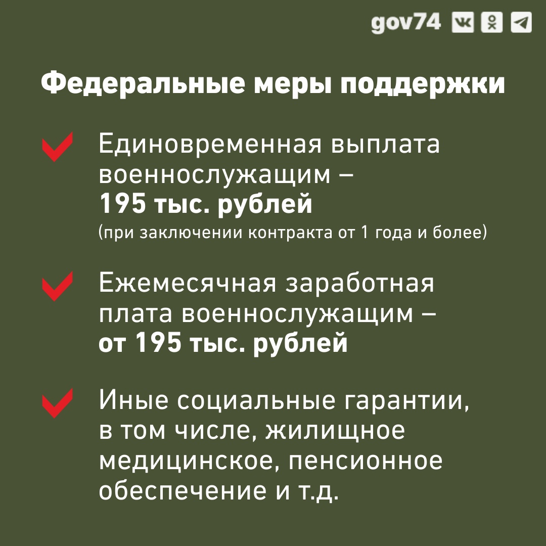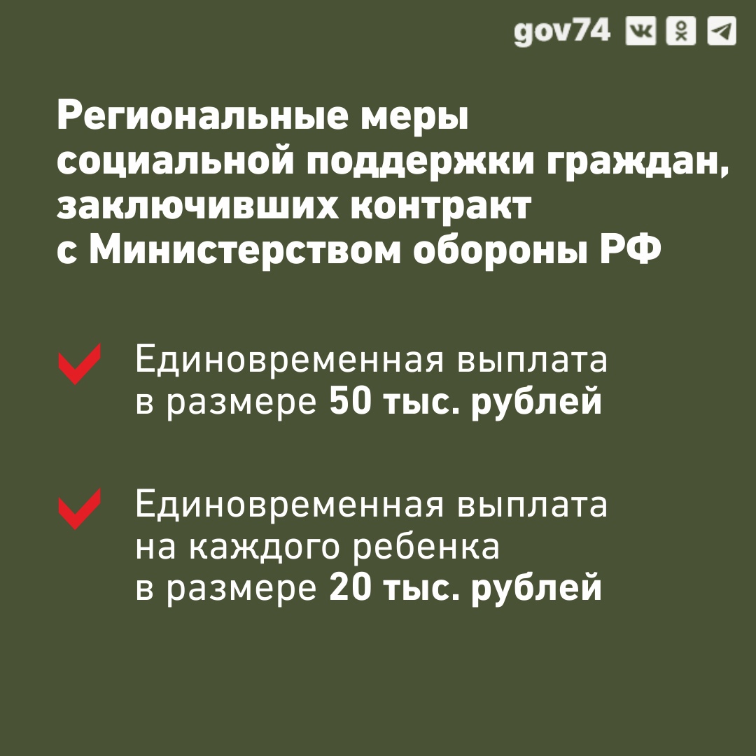 На Южном Урале вводят региональные меры соцподдержки граждан, заключивших контракт с Минобороны РФ. Подробнее - в карточках.