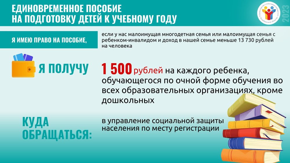 Размер выплаты в 2023 году составляет 1500 рублей. Пособие можно получить на каждого ребенка из многодетных малоимущих семей в возрасте до 23 лет и каждого ребенка-инвалида из малоимущих семей в возрасте до 18 лет, обучающихся очно в общеобразовательных, профессиональных образовательных организациях и вузах.