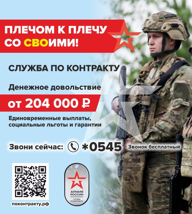 Это позволит вам получать зарплату от 204 тысяч рублей, до миллиона за выполненные боевые задачи и 5 окладов за получение госнаград. А ещё – региональные меры поддержки: от выплаты 20 тысяч на каждого ребёнка до бесплатного места в детскому саду вне очереди.