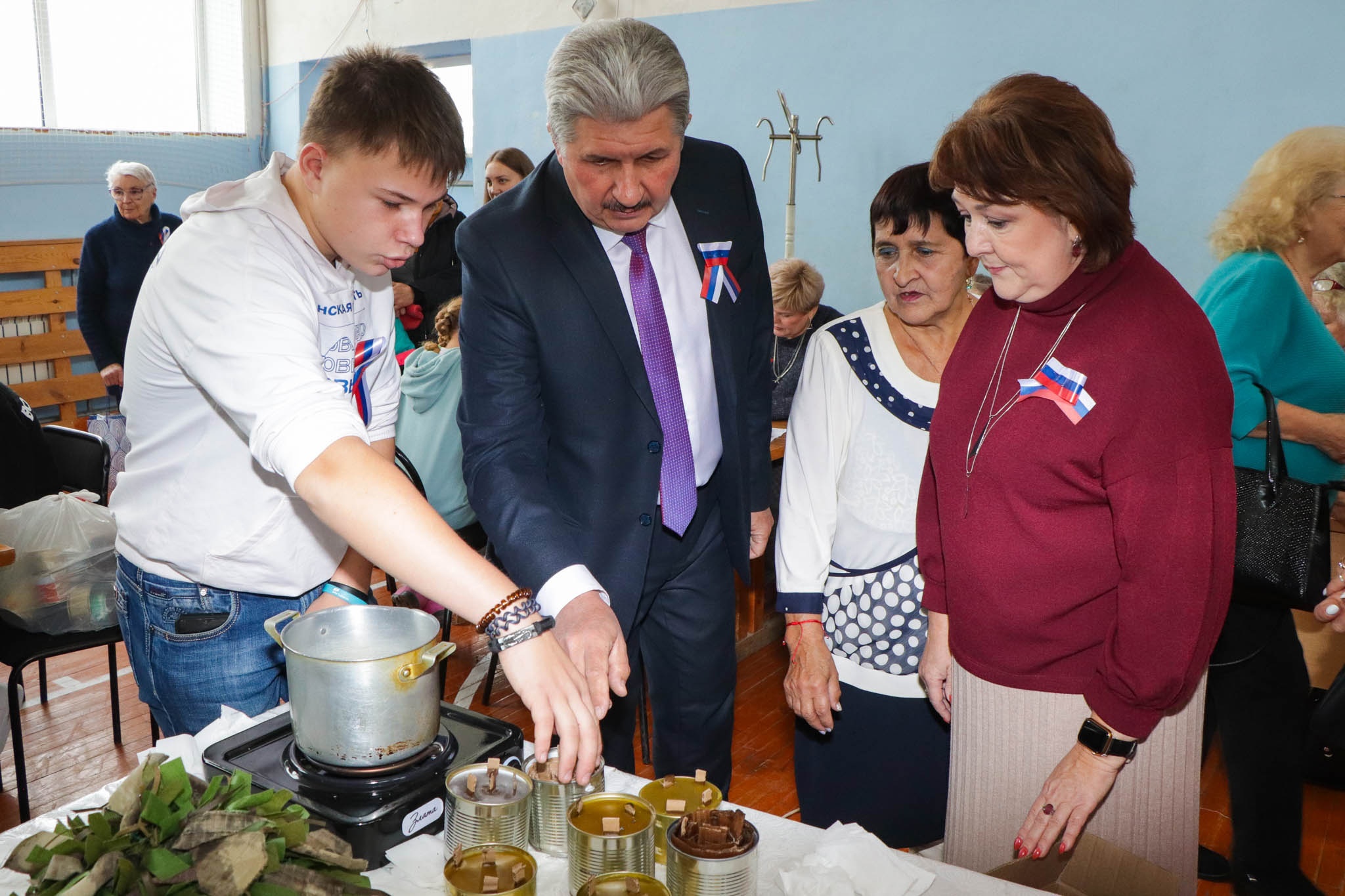Накануне в рамках встречи с волонтерами в районном Доме культуры прошли мастер-классы, которые объединили более 400 участников со всего Еткульского района. На десяти площадках были продемонстрированы основы мастерства, хитрости и тонкости производства всего необходимого для помощи нашим землякам, находящимся в зоне СВО. Как правильно сложить марлевые салфетки для стерилизации, в какой последовательности вязать узлы на браслете «выживания» и как скрепить основы для тактических носилок - обо всем этом рассказывали участники волонтерских движений.