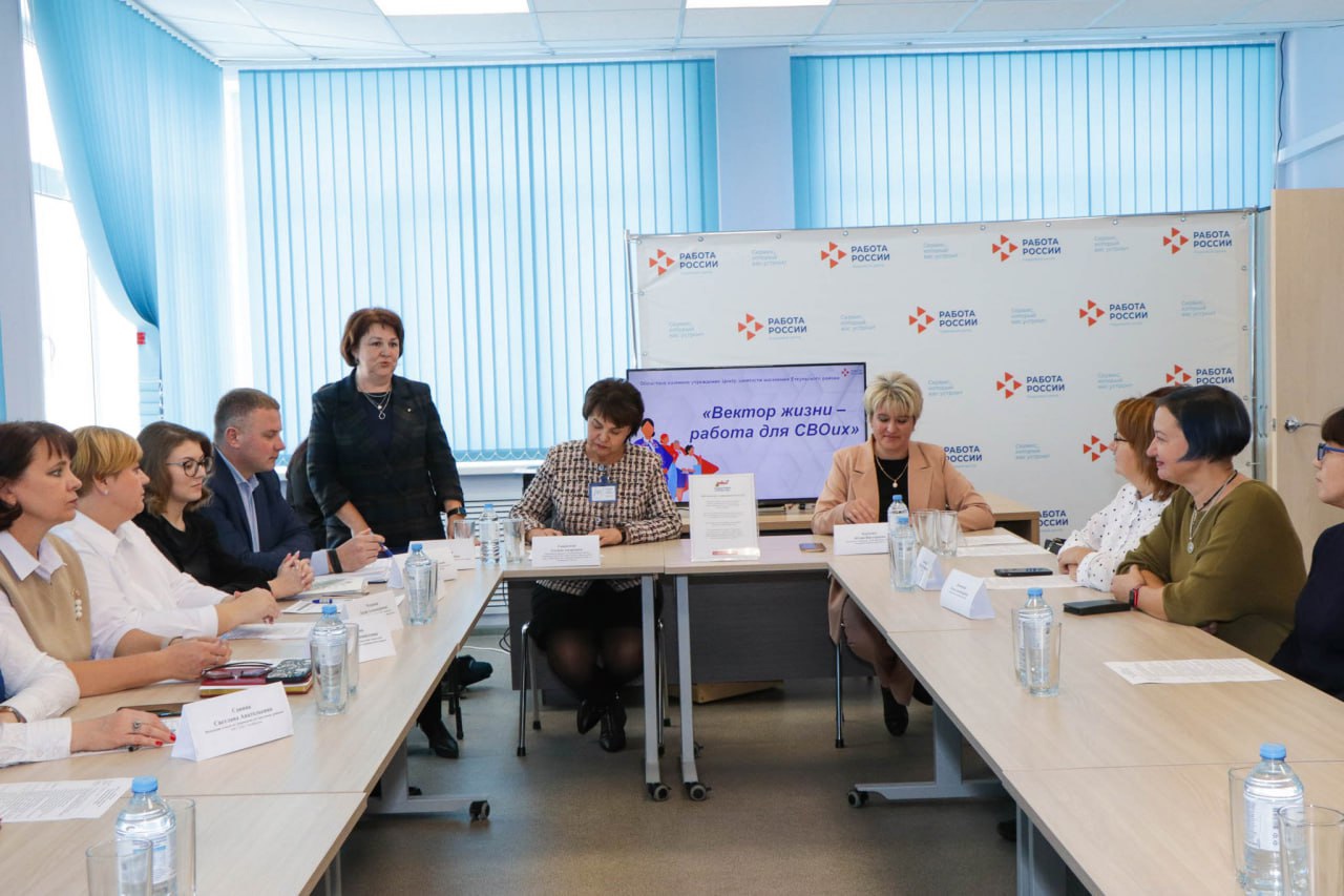 Во время встречи были подняты вопросы реализации областного проекта Семейный центр «Вектор жизни – работа для СВОих», реализации мер социальной поддержки участников СВО и членов их семей, предоставления государственных услуг службы занятости для участников СВО и их семей.