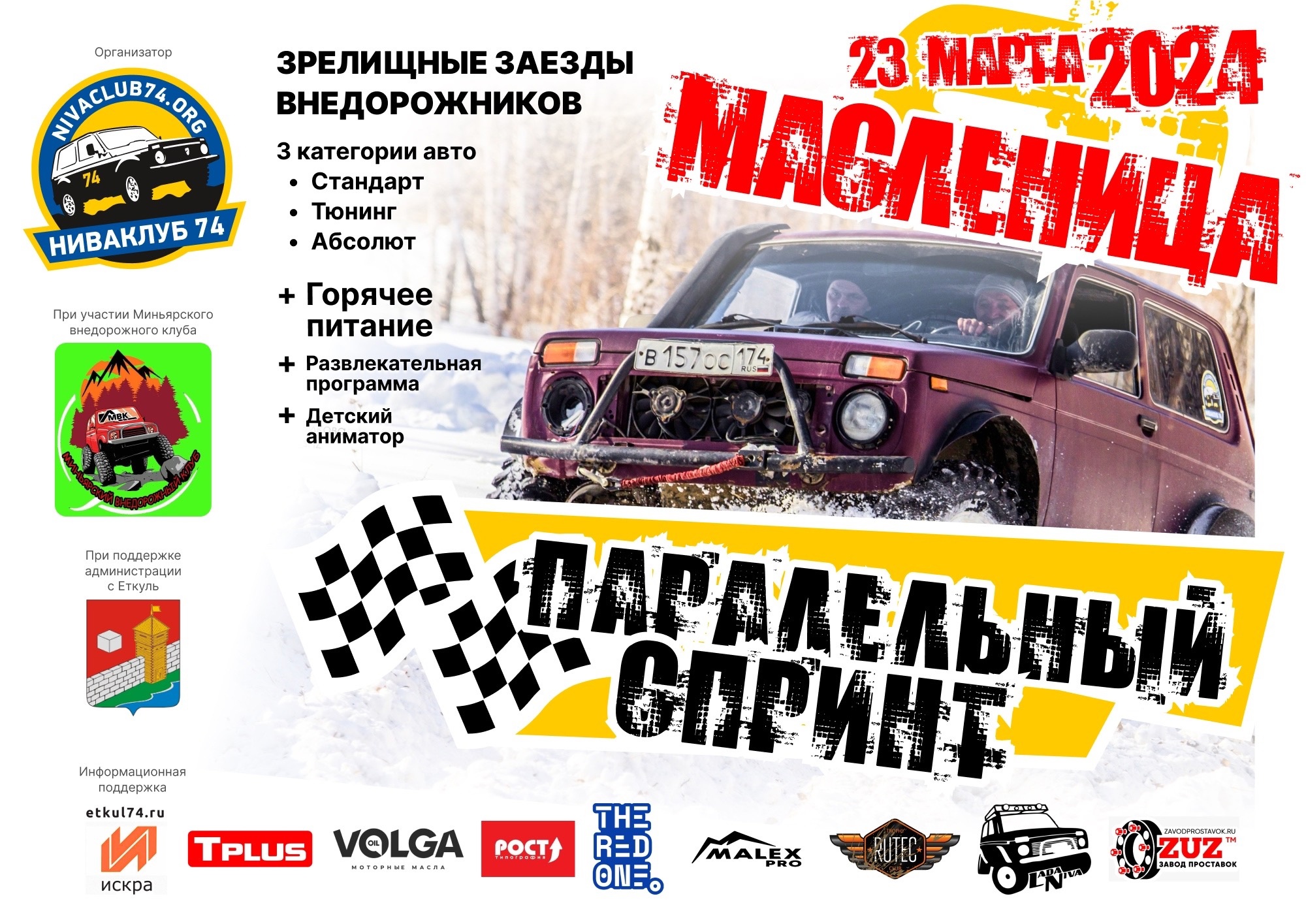 В числе организаторов Управление по физической культуре и спорту администрации Еткульского района и Ниваклуб74. Как обещают организаторы, трасса «проходимая» для всех легковых внедорожников: кроссоверов, пикапов, джипов.
