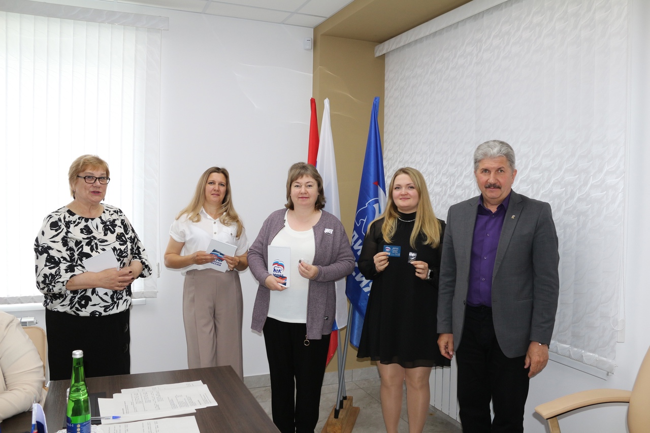 На Конференции вручили партийные билеты новым членам партии: Светлане Белоноговой, Наталье Патрушевой и Екатерине Олейниковой.