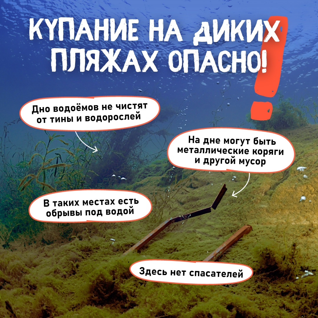 Все трагические инциденты произошли на территории необорудованных мест для купания. Здесь нет матросов-спасателей, а значит помощь в случае ЧП оказать тут просто некому! Думай о последствиях и смотри наши карточки! Они помогут тебе выбрать безопасное место для отдыха.