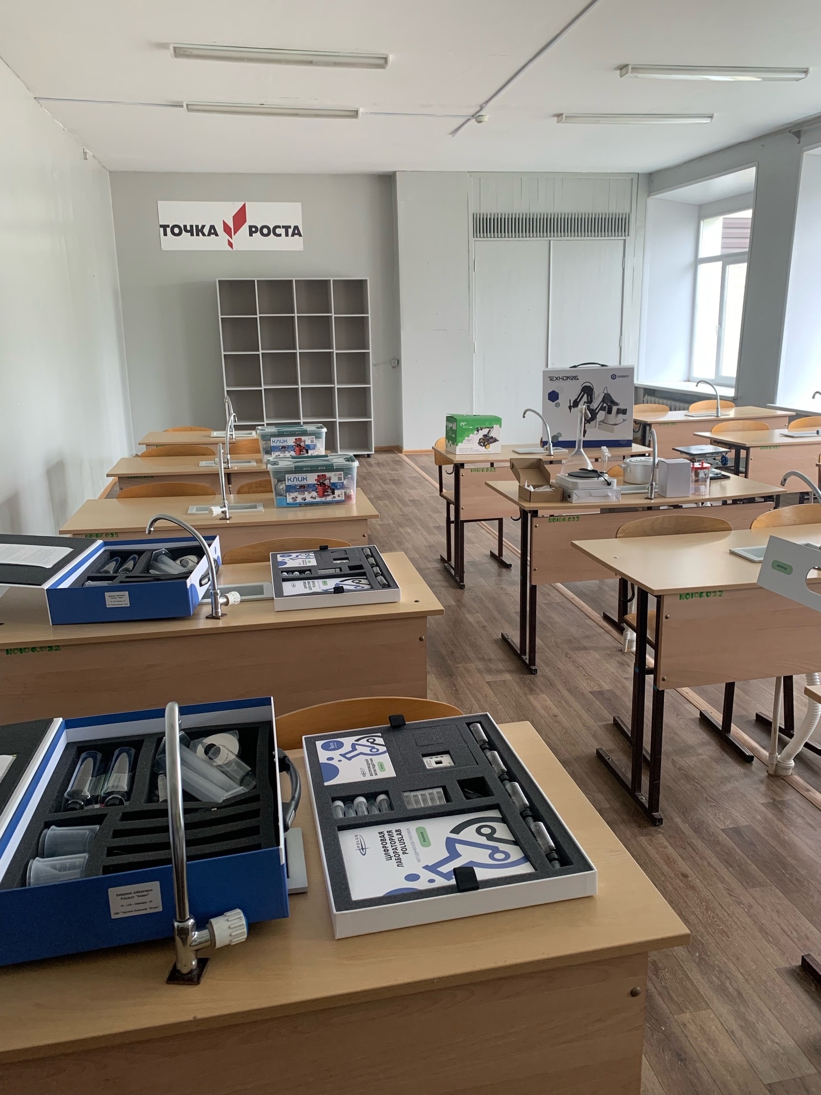 Также в средней школе идут работы по благоустройству территории, в трех учебных кабинетах открываются «Точки роста».
