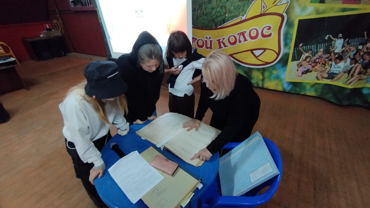 Сегодня в ДОЛ «Золотой колос» для ребят профильной смены и девочек 3-го отряда был проведен архивный урок об истории нашего района и особенностях его развития.