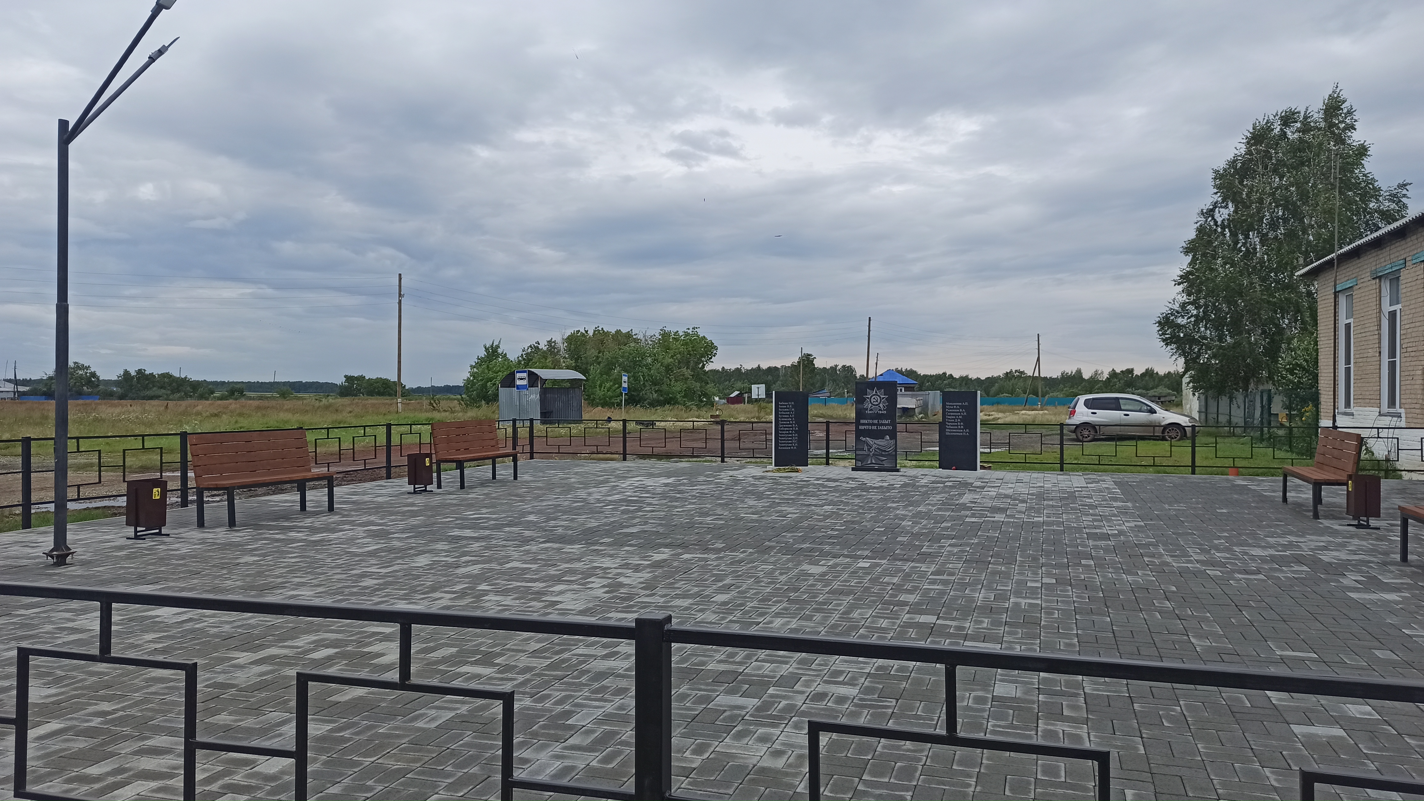 • Площадь перед памятником вымостили тротуарной плиткой,