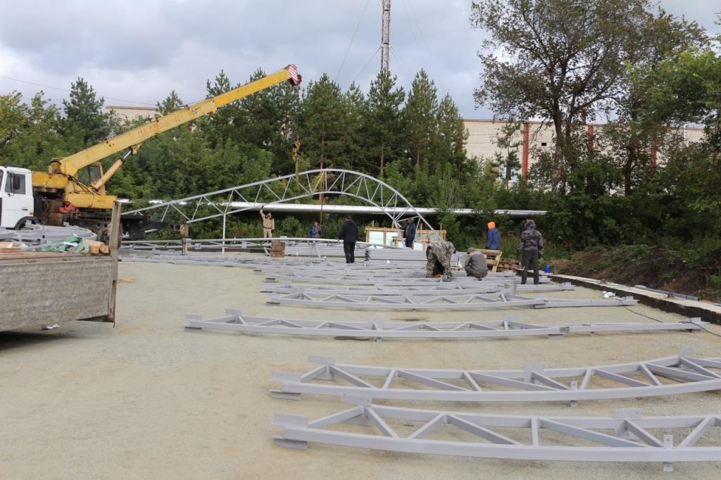 Продолжается возведение комплекса над хоккейным кортом