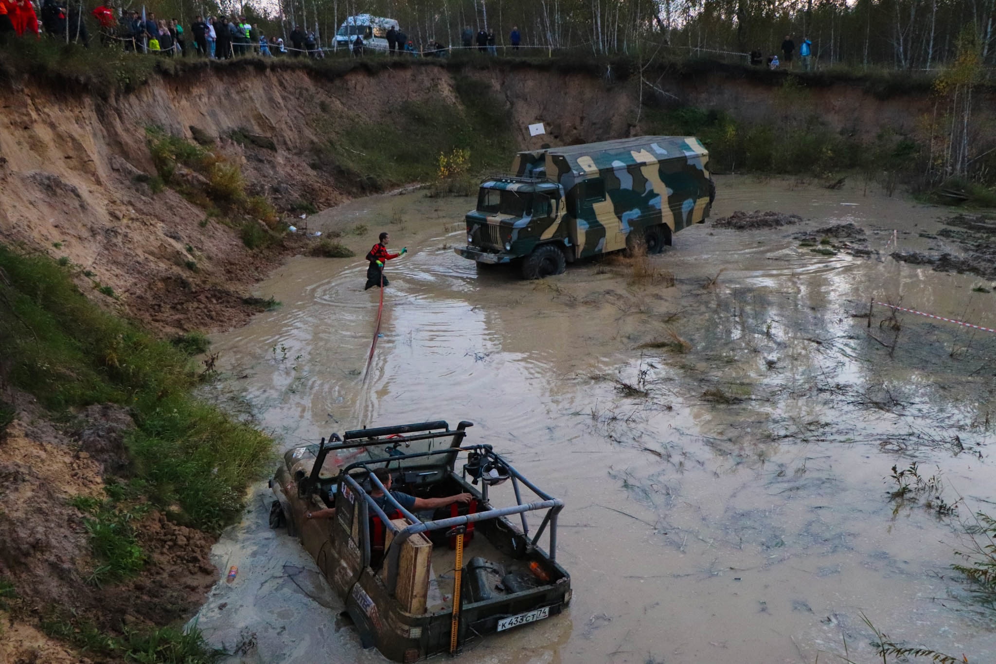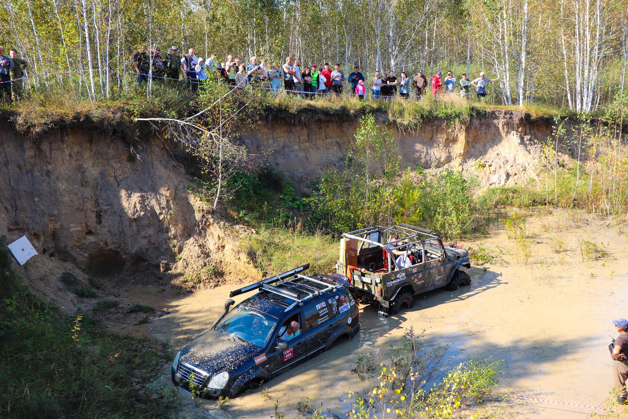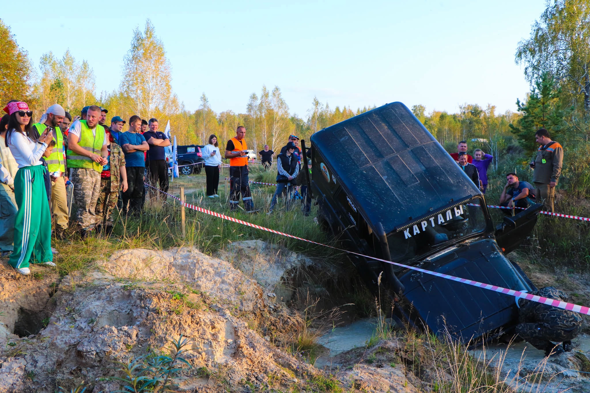 Участники мероприятия соревновались на автомобилях по грязи и бездорожью. Ребята ездили по трассе в