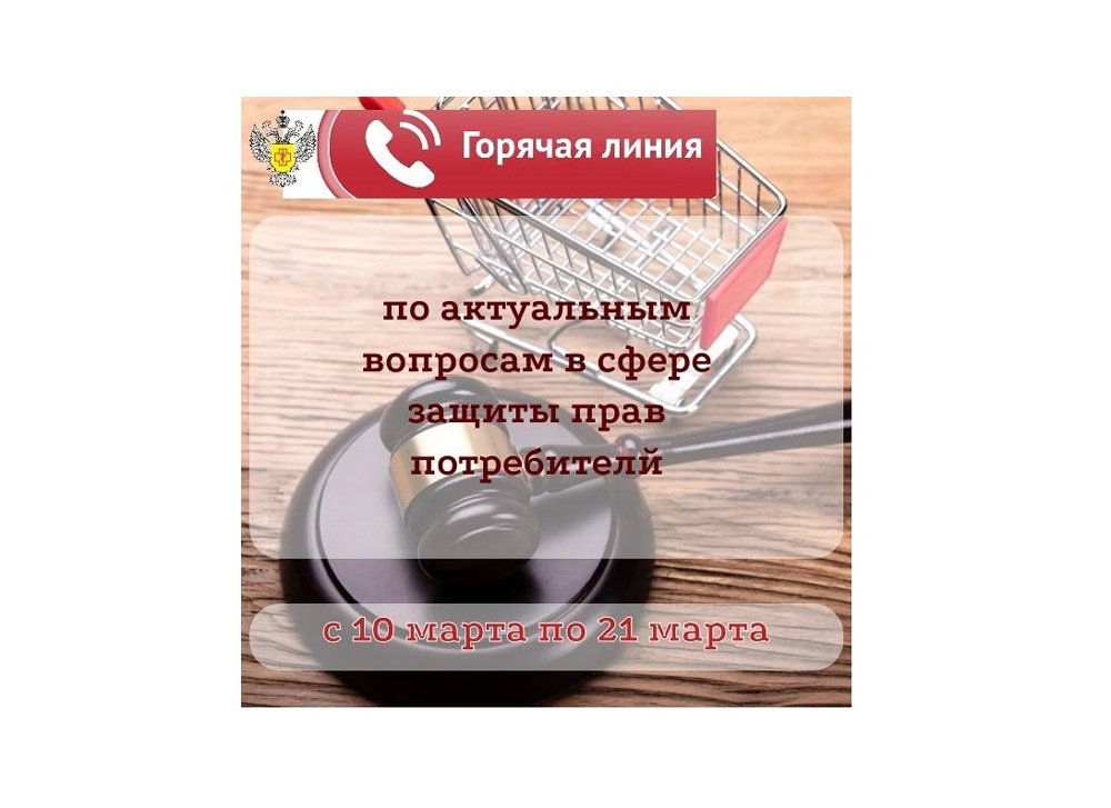 Консультационных центрах и пунктах по защите прав потребителей ФБУЗ «Центр гигиены и эпидемиологии в Челябинской области» с 10 по 21 марта 2025 года начинает работать «горячая линия» для потребителей по актуальным вопросам приобретения товаров и услуг, в том числе через интернет, решении вопросов защиты своих прав в различных жизненных ситуациях.