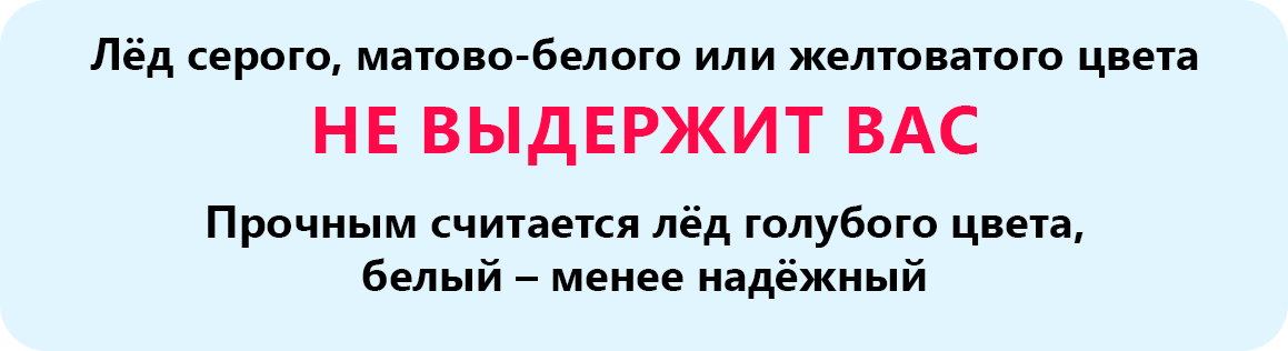 • Безопасная толщина для человека – не менее 10 см в пресной воде и 15 см в солёной