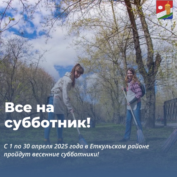 По распоряжению главы района Юрия Кузьменкова с 1 по 30 апреля 2025 года пройдут весенние субботники!