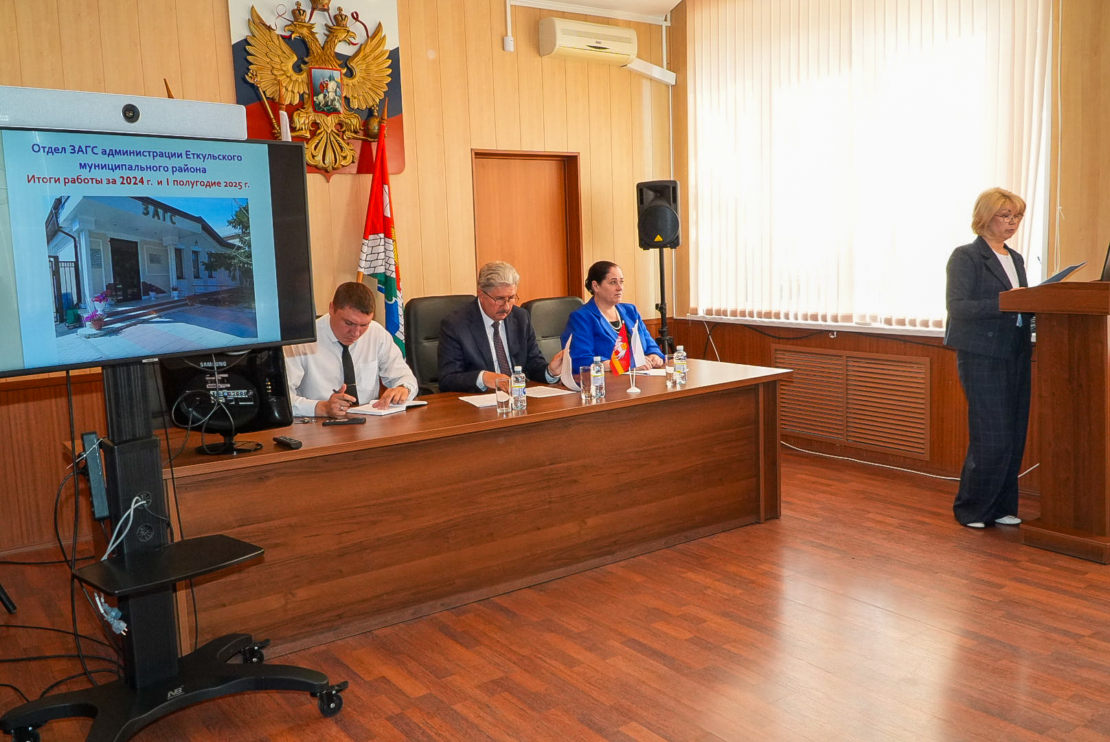 Перед началом совещания Юрий Кузьменков поздравил с днем рождения Ирину Владимировну Сергееву, начальника отдела муниципального имущества и Ольгу Владимировну Шуховцеву, секретаря ТИК Еткульского района. Первой открыла совещание Светлана Чечиль, начальник отдела сельского хозяйства и экологии. Она доложила об итогах посевной кампании 2025 года на территории Еткульского муниципального района. Посевная площадь в 2025 году – составила 49,5 тыс. га – это зерновые и зернобобовые, масличные и кормовые культуры, картофель. Юлия Печенкина, начальник отдела ЗАГС, рассказала об итогах работы отдела за 2024 год и I полугодие 2025 года. Владимир Агаян, начальник Управления культуры и молодежной политики, представил информацию о реализации основных направлений молодежной политики, воспитания гражданственности и патриотизма, поддержке талантливой молодежи и молодежных инициатив. Он рассказал о проведенных на территории Еткульского района мероприятиях, в которых активно участвовали молодые люди и активисты района. Это: районный форум «Я – волонтер»; школа добровольцев «Делаю Урал Добрее»; образовательный семинар-конкурс «Лидеры села»; акции «Георгиевская ленточка», «Свеча памяти», акции, посвященные ведению здорового образа жизни; ежегодный автопробег «Огонь памяти». |