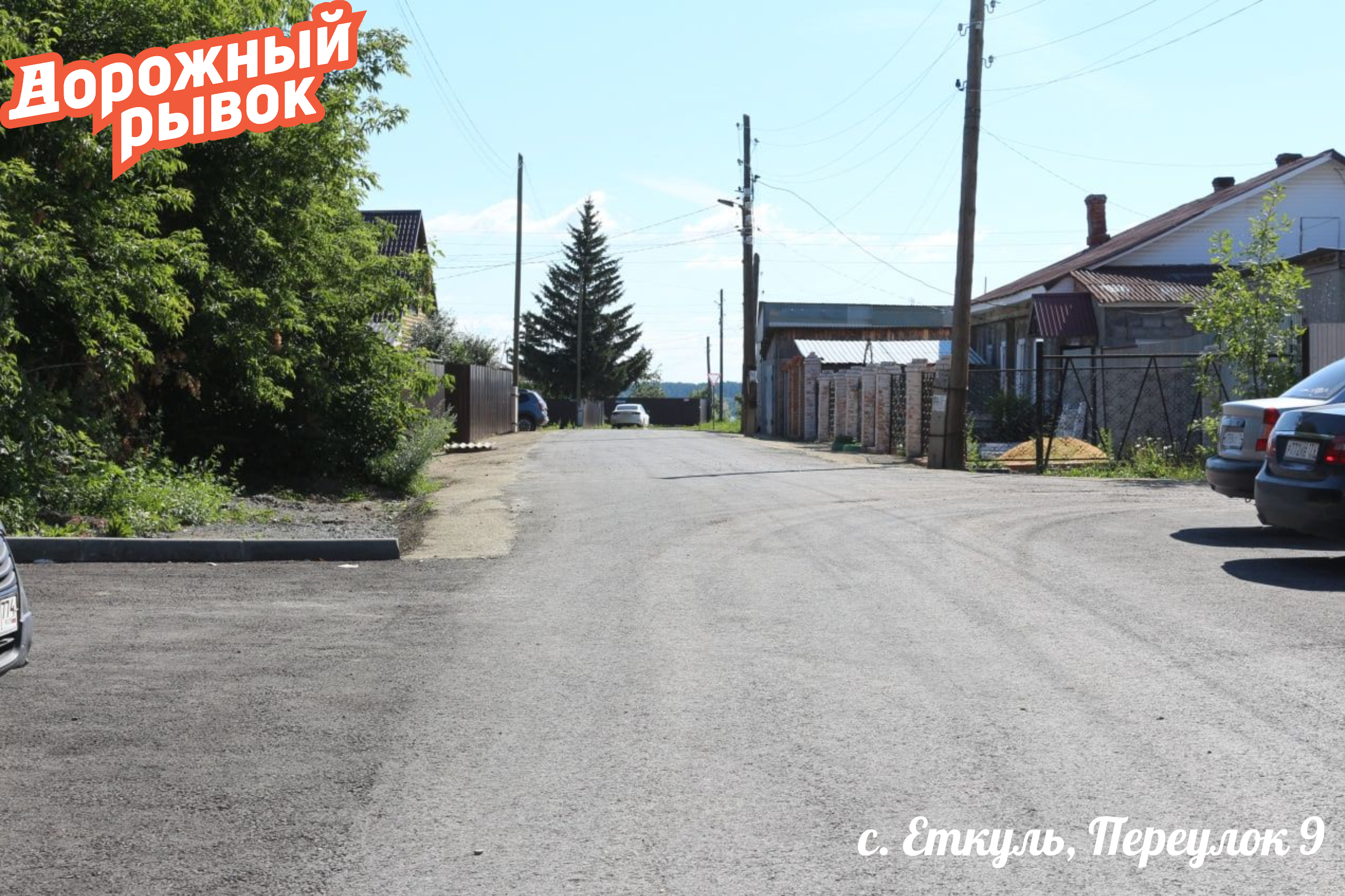 На сегодняшний день завершены работы на нескольких участках, которые теперь радуют жителей новым покрытием: — обновлена улично-дорожная сеть по улице Комсомольской (от улицы Первомайской до улицы Садовой) в селе Еткуль. — закончен ремонт улично-дорожной сети по Переулку 9 (от улицы Ленина до улицы Набережной) также в селе Еткуль.