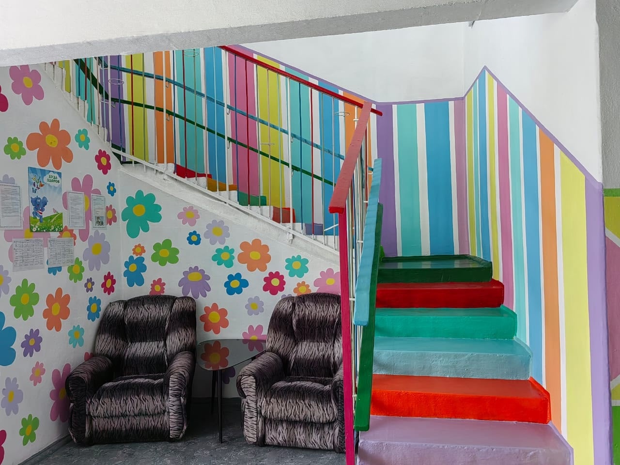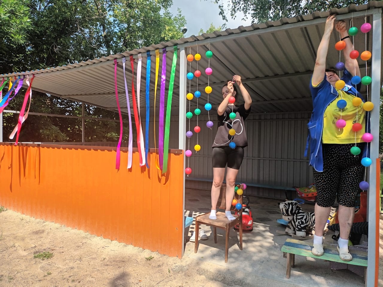 Руководители и сотрудники детского сада творчески подошли к ремонтным работам, и теперь ребят встречает яркая входная группа и не менее яркий холл, и лестница. Также были приведены в порядок игровой инвентарь на всех участках для прогулок.