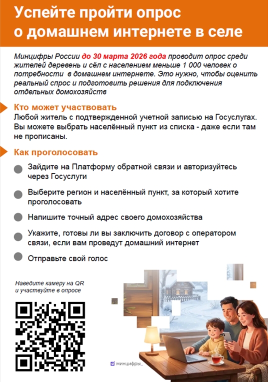 Результаты опроса лягут в основу перечня территорий, где в приоритетном порядке будет организовано подключение домохозяйств к сети «Интернет». Инициатива призвана помочь устранить цифровое неравенство и обеспечить жителей отдалённых и малонаселённых пунктов современными телекоммуникационными услугами.