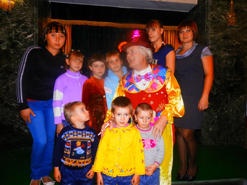 Спектакль состоялся в ДК Железнодорожников. Дети были в восторге от мастерства Юрия Дмитриевича и его забавных питомцев. На память ребята сфотографировались с известным дрессировщиком и получили от него в подарок книжки «Уроки доброты».