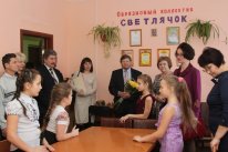Все в этот декабрьский день было как положено: хозяева на крыльце, гости у крыльца, красная ленточка, разделяющая их, и золотистый каравай на белоснежном рушнике. Торжественный момент новоселья – здание бывшей совхозной конторы, а затем филиала профтехучилища после грандиозного обновления официально открывало свои двери в новом качестве: здесь поселился детский центр «Радуга». Право разрезать ленточку директор ЦРТДЮ Е.Ю Кущ предоставила председателю СПК «Коелгинское» А.И. Шундееву и заместителю главы Еткульского муниципального района Ю.В. Кузьменкову. Предприятие передало детскому центру свое здание, а район вложил в его ремонт большие деньги, и в результате – вот такой подарок! Редкий и бесценный по нашему времени. Елена Юрьевна устроила для гостей экскурсию по зданию. Многие из нас побывали в нем еще летом, когда наконец были утрясены все юридические вопросы и пришла пора «браться за чемоданы», если бы не… Вот этих «не» было великое множество, начиная с входных дверей. Требовался не просто косметический ремонт, нужно было сделать здание удобным для занятия в нем многочисленных коллективов, и при этом не было ни-че-го! Елена Юрьевна теперь уже с улыбкой вспоминает, как один за другим шли к ней педагоги и просили – кто клей, кто краску, кто обои, а у нее – руки опускались: во что ввязались. Первым в такую вот минуту к ней пришел отец Леонид, настоятель храма Михаила Архангела, его двадцать тысяч и помогли поверить в свои силы. Началось финансирование из района, удалось подключить депутатов всех уровней. Коллектив засучил рукава, и теперь в шутку называет себя узкими специалистами широкого профиля штукатурно-малярных работ. Давайте посмотрим, что получилось у 17 энтузиастов. А изменилось все, начиная с лестниц и коридоров. Черно-синюю краску стен закрашивали на несколько рядов, чтобы придать им неповторимый солнечный цвет. По низу «травку пустили», по коридору - словно по лугу шагаешь. Фотографии в лестничном проеме рассказывают о жизни в «Радуге», юный корреспондент пресс-центра Валерия Сажина подготовила фотогалерею. Каждый кабинет приобрел свое лицо. В спортзале нас встречали спортсмены двух секций - дзюдо и греко-римской борьбы, тренеры А.М. У пресс-центра помещение вполне достаточно для работы, результаты которой ярко демонстрируют последние дипломы. Юные журналисты не стоят на месте. - Наш коллектив участвовал во Всероссийском фестивале юных журналистов в Санкт-Петербурге, газета «Радуга» признана одной из лучших сельских детских газет, - рассказывает педагог В.Е. Федотова. О любви к своему новому «гнезду» свидетельствуют стены: от ремонта дома у нее оставались разные обои, ребята помогли их разрезать на полоски, а Вера Ефимовна тщательно оклеила ими стены. У этой техники даже название свое есть, а главное – интересно и очень уютно получилось. Заглянем в творческую мастерскую коллектива «Светлячок». У Ирины Ивановны Дубровиной, которая нынче отмечает 20-летие своей деятельности в этом коллективе, занимается более 70 детей. Говорят, когда заглянешь в кабинет в час пик – словно в муравейник попадешь, вместе с детьми и мамочки рисуют, клеят. Еще одна мастерская, здесь под руководством Аллы Федоровны Шайдулиной занимается коллектив «Разноцветные узоры». Глаза разбегаются при виде того, что умеют дети – вышивают, выжигают