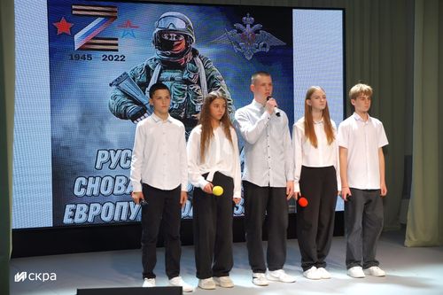 В программе звучали патриотические стихи и песни в исполнении учеников 10 «б» класса (кл. рук. Бекшаева М.Н.) и солистов РДК.